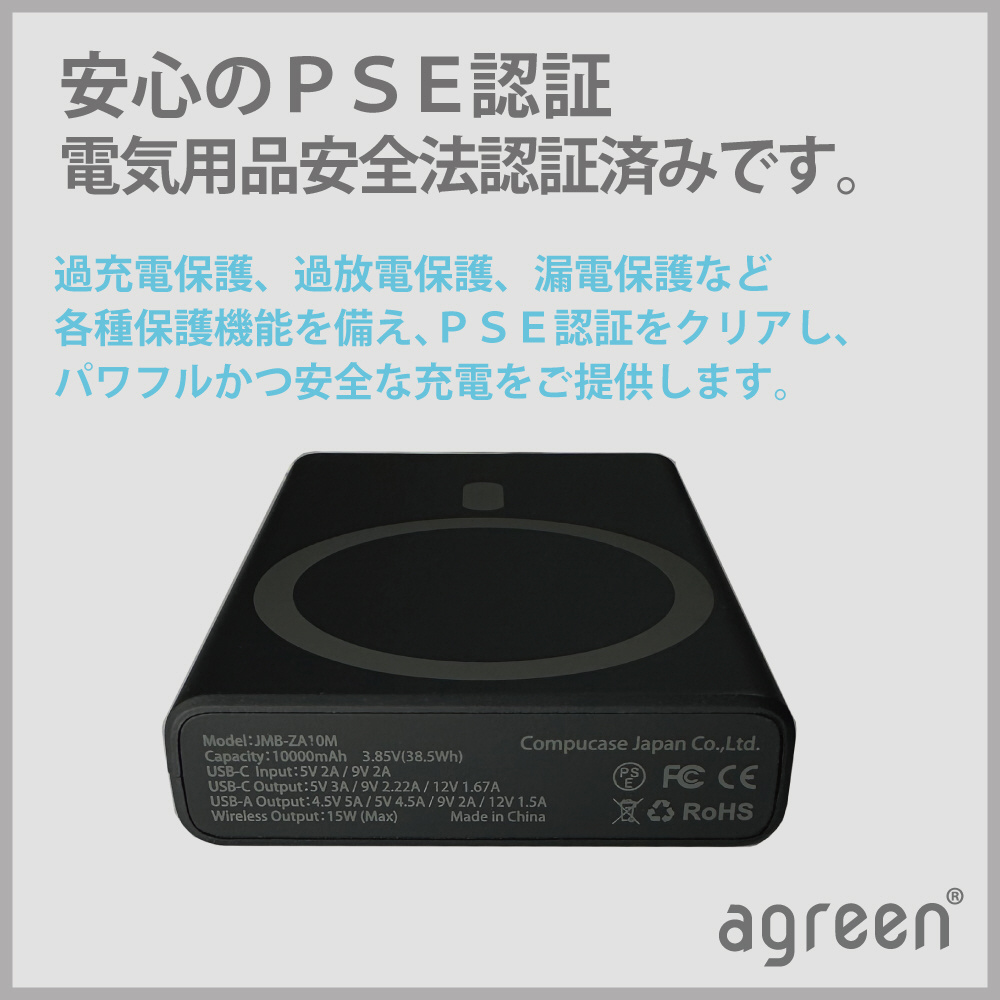 超薄型マグセーフ10000mAhモバイルバッテリーブラック PD20Wで高速充電可能 高速ワイヤレス15W充電可能