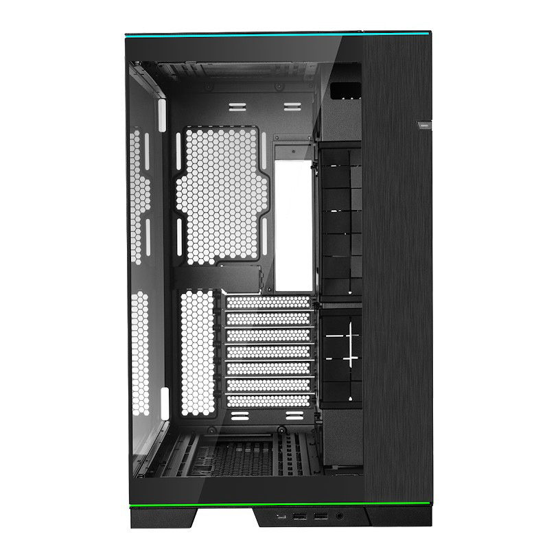強化ガラス製のフロント・サイド両パネル+取り外し可能なフロントピラーの採用と、ケース上下に配置されたL字型のRGBストリップによって、内部コンポーネントをシームレスかつ鮮やかに表現できることが最大の魅力です。
