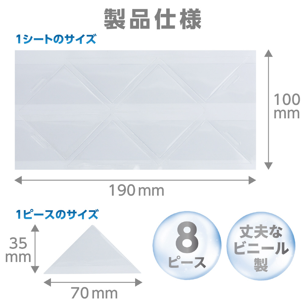 自由に貼れる三角コーナーシール!丈夫なビニール製!