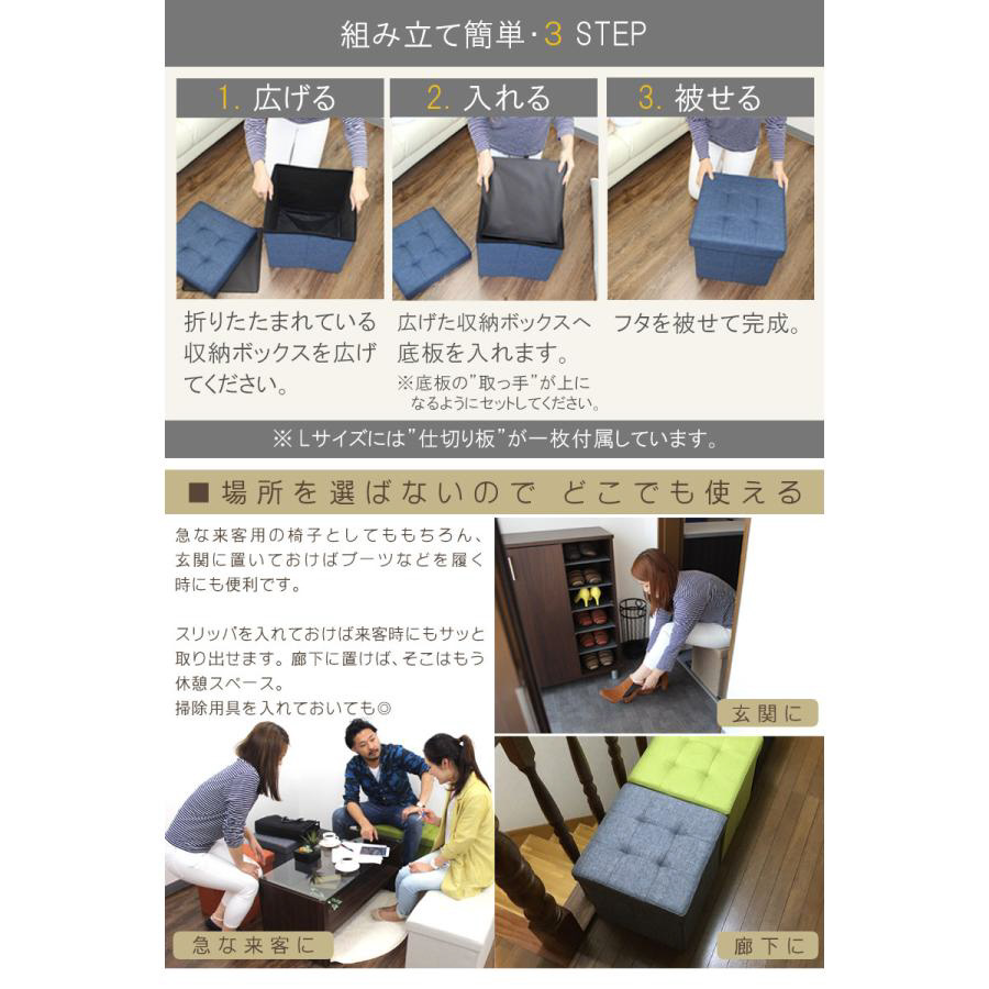 座る、オットマン、収納、畳める。4wayの万能収納ボックス。
