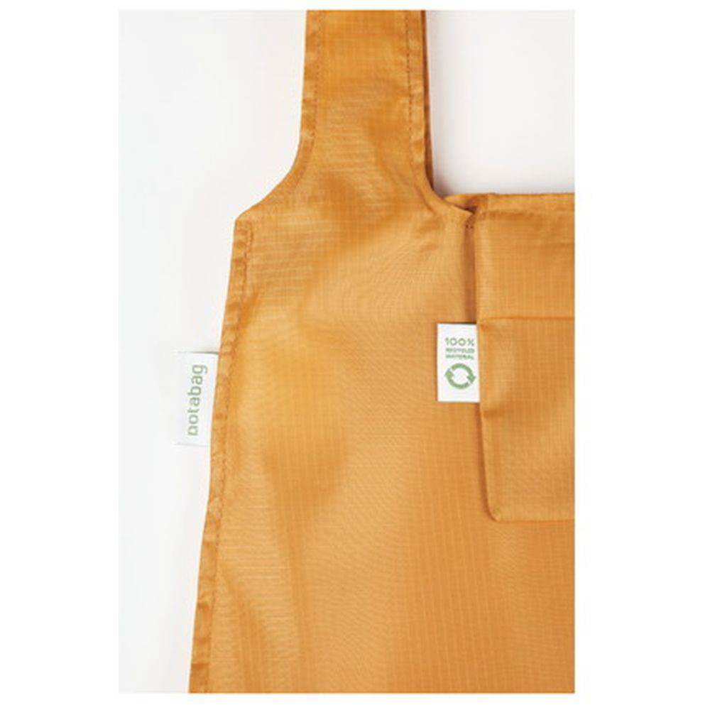 再生PET素材で作られた、軽くて丈夫な折りたたみ式トートバッグです。