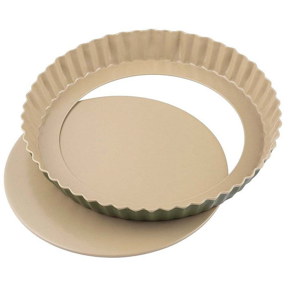 ●焼きあがった生地を手早く取り出せる、底取れタイプのタルト型です。