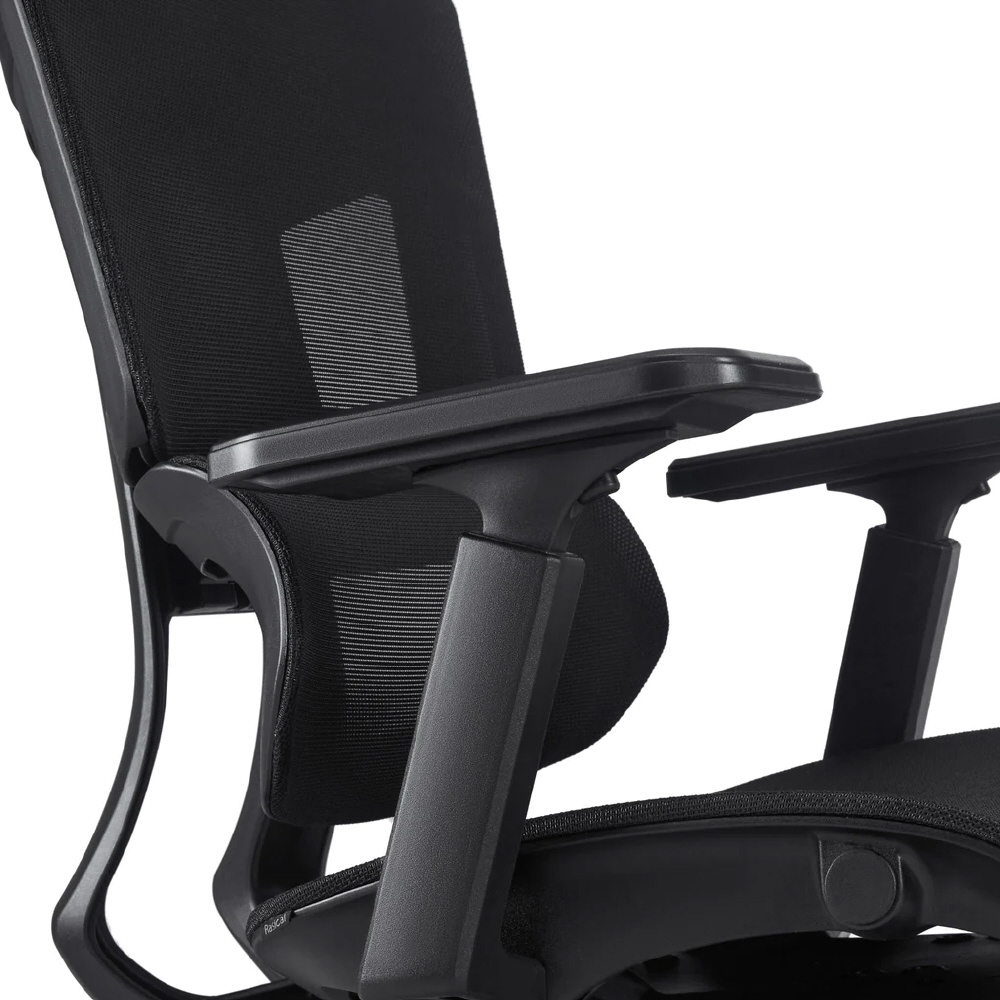 さらに「Base」には、他にはない前に突き出す事ができるランバーサポート機能がついています。座ったままランバーサポートを前方に4段階、最大2.5cm突き出す事が出来るため、猫背(前傾姿勢)で作業した場合でも、サポート範囲が広く姿勢が維持しやすくなります。
