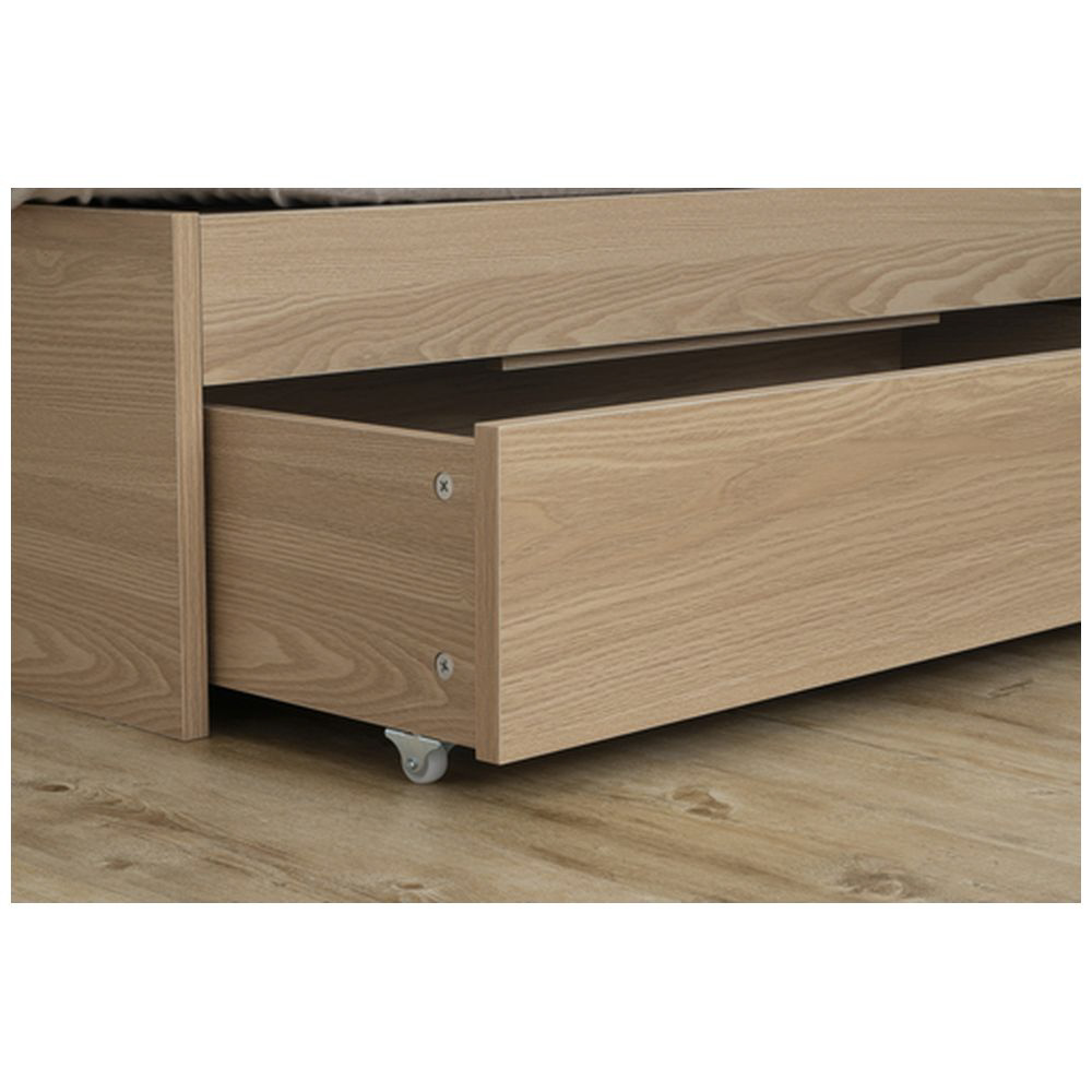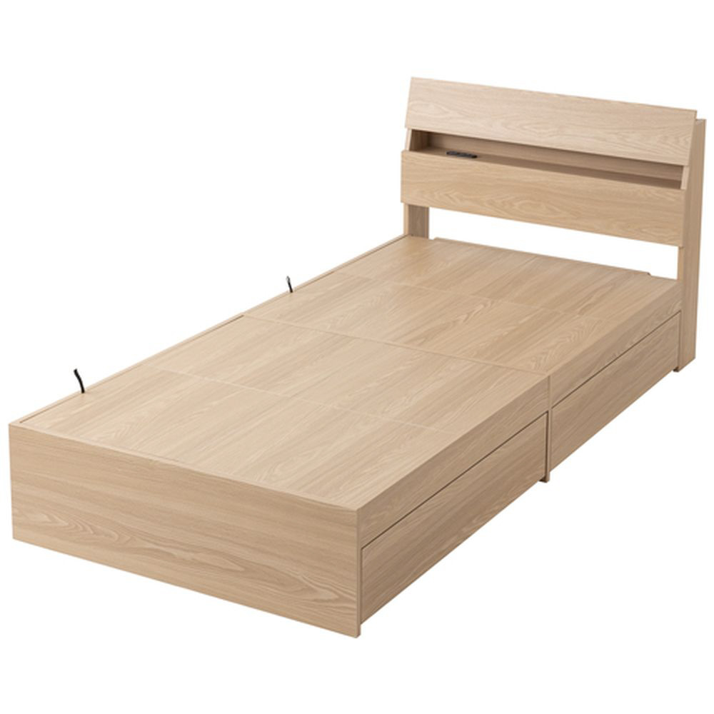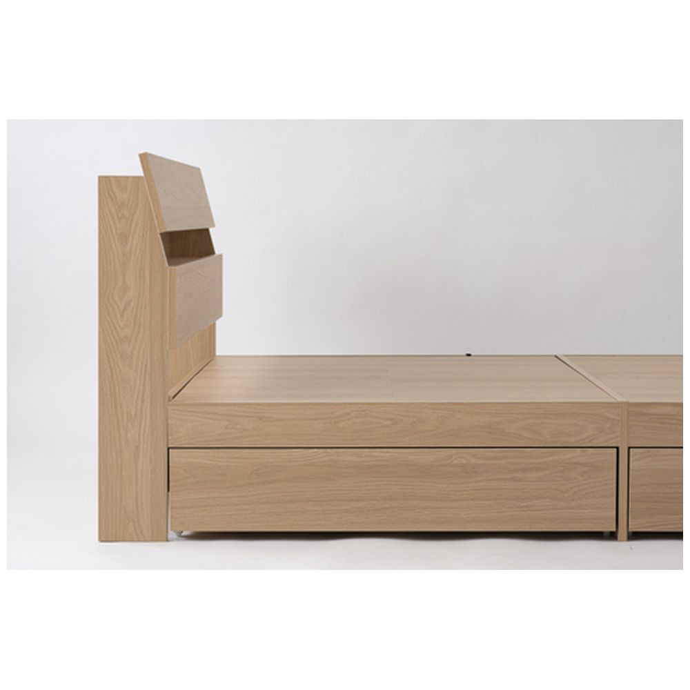 収納にこだわったベッドです。温かみのある木目調デザインで、なめらかな質感です。