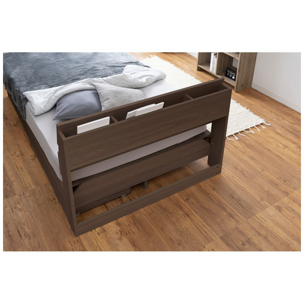 収納にこだわったベッドです。温かみのある木目調デザインで、なめらかな質感です。