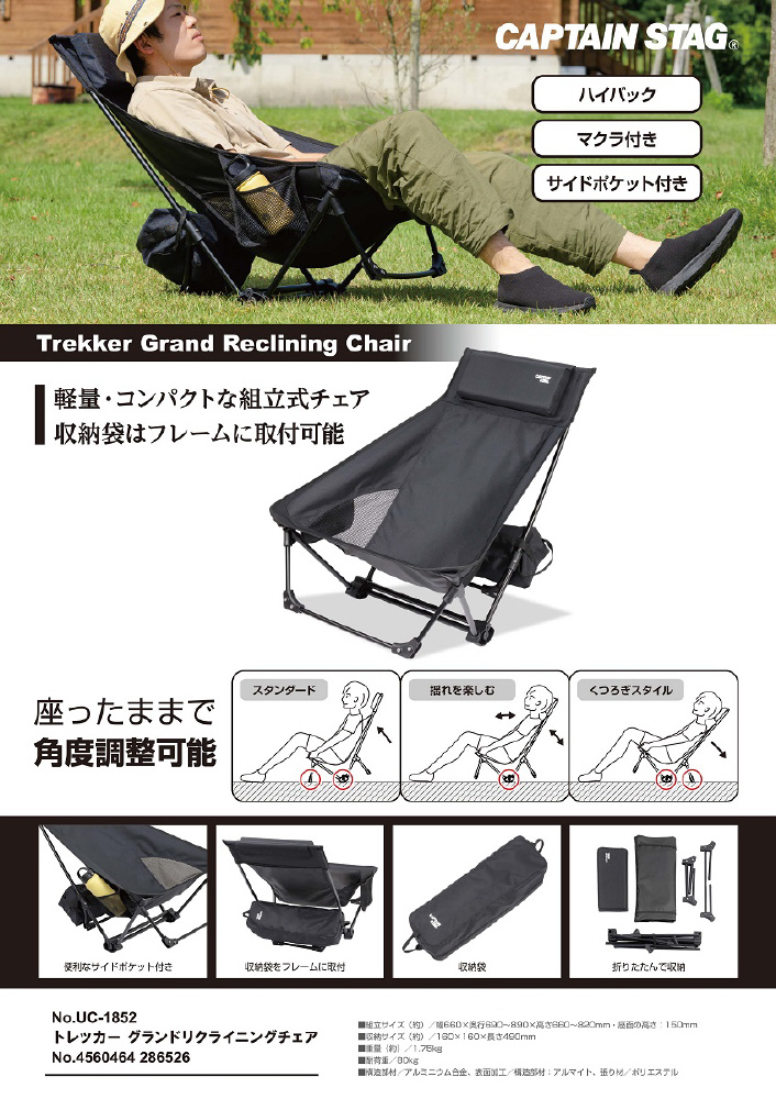トレッカー グランドリクライニングチェア(約幅660×奥行690〜890×高さ660〜820mm) ブラック UC-1852 [リクライニング /1人向け /単品]
