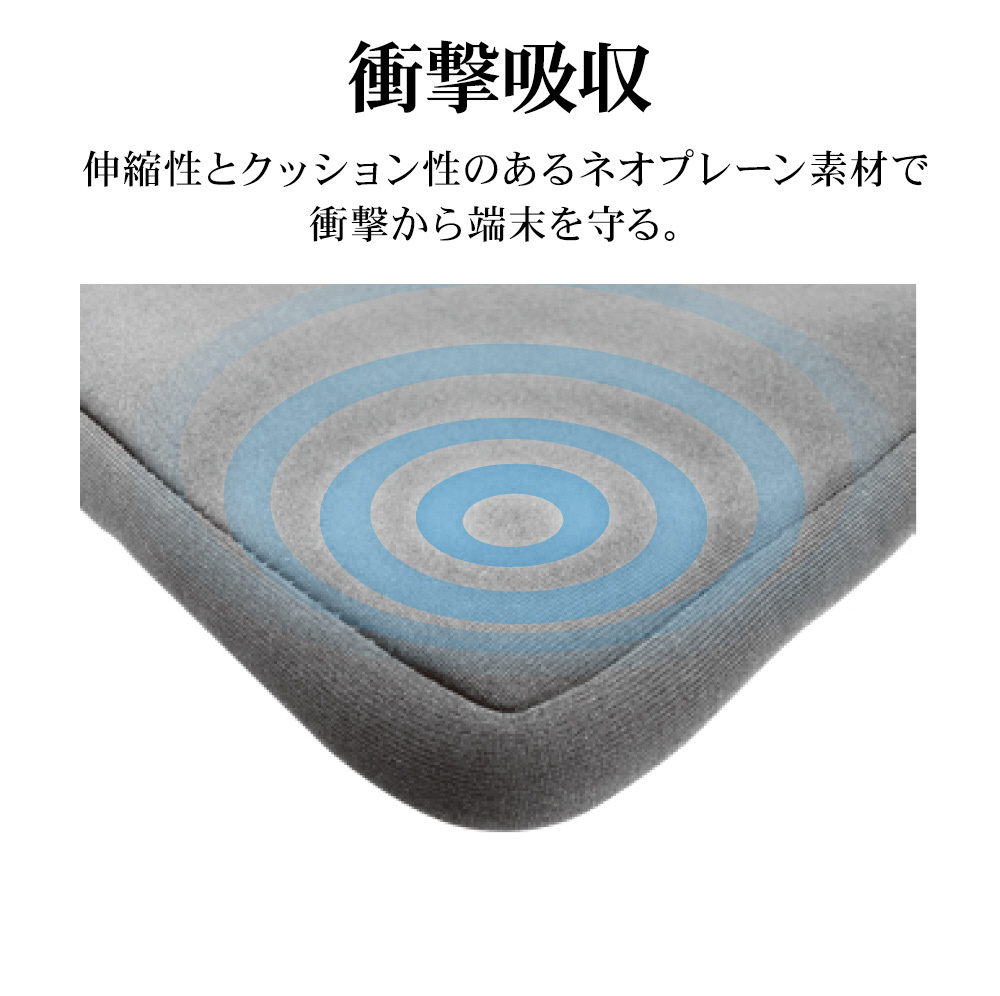 ■伸縮性とクッション性のあるネオプレーン素材で衝撃から端末を守る。
