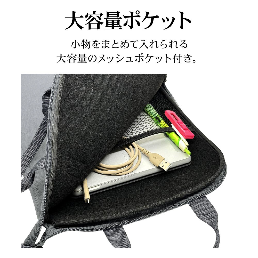 ■小物をまとめて入れられる大容量のメッシュポケット付き。