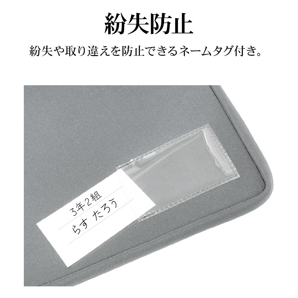 ■紛失や取り違えを防止できるネームタグ付き。