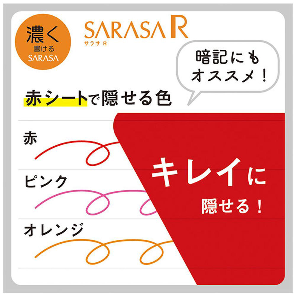 従来品より27%濃く書けるインクを採用し。教科や書く内容に合わせてカラーを使い分けることで、重要なところを目立たせることができます。赤、オレンジ、ピンクは赤シートを重ねると文字が隠れるので、暗記に使うこともできます。