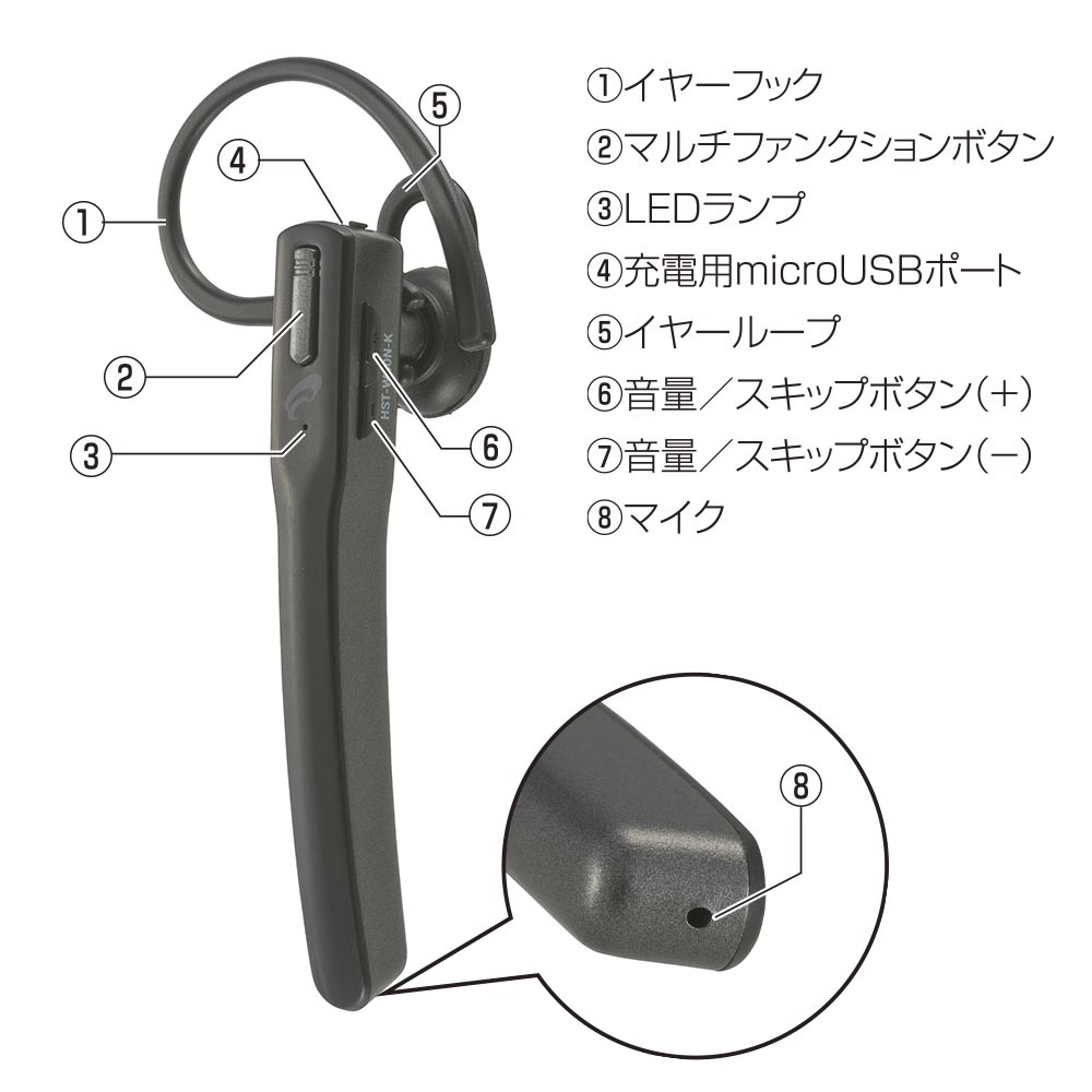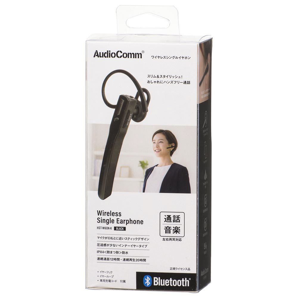 ヘッドセット AudioComm ブラック HST-W60N-K [ワイヤレス(Bluetooth) /片耳 /イヤホンタイプ]
