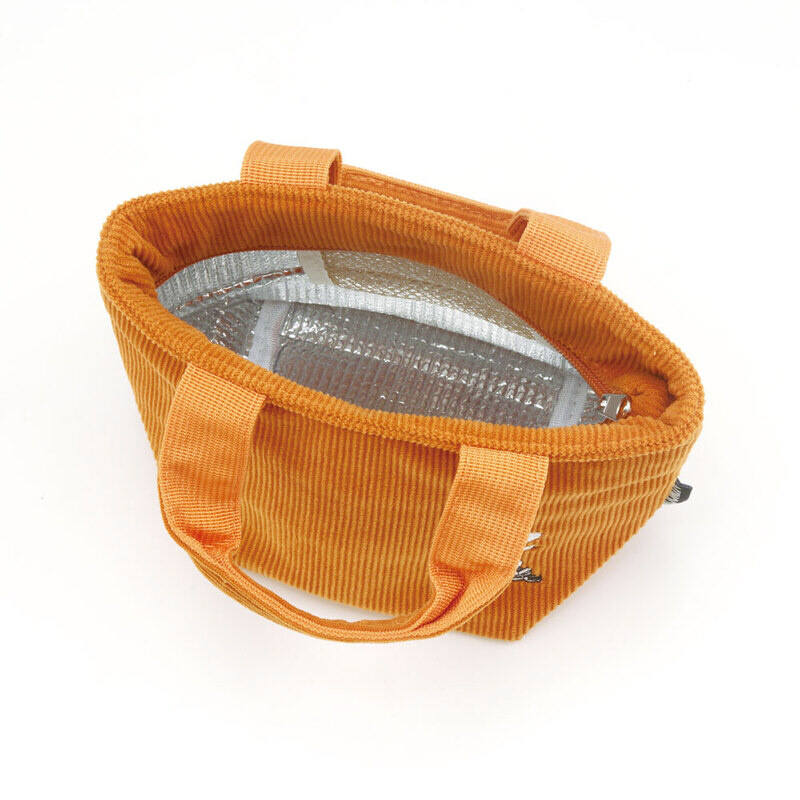 コーデュロイ生地の保温・保冷ジャー用ランチバッグで内側は保温、保冷効果のあるアルミ蒸着素材。