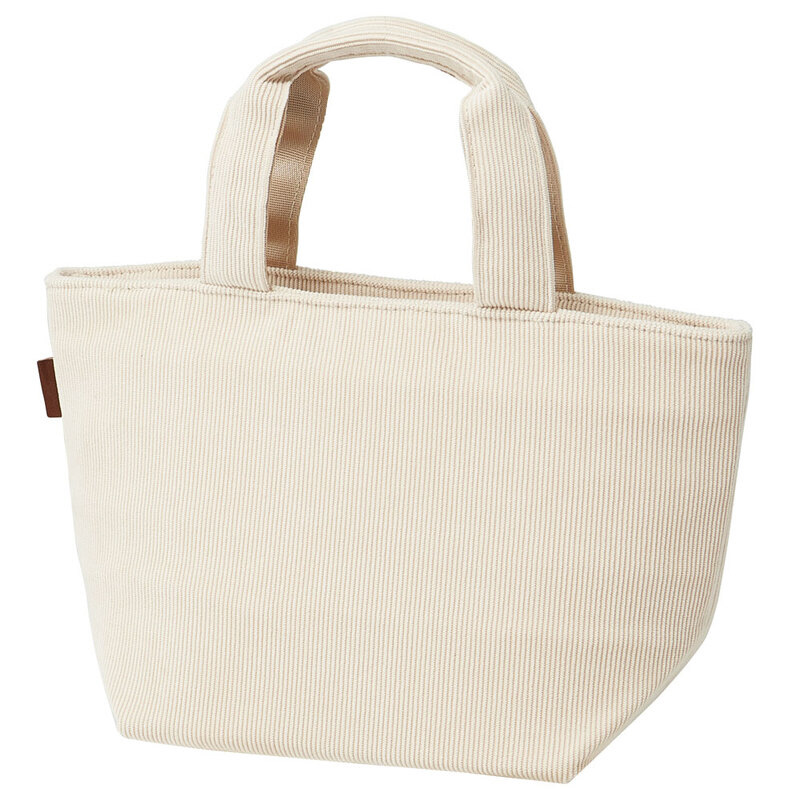 コーデュロイ生地の保温・保冷ジャー用ランチバッグで内側は保温、保冷効果のあるアルミ蒸着素材。保冷剤などを入れられるメッシュポケット付き。