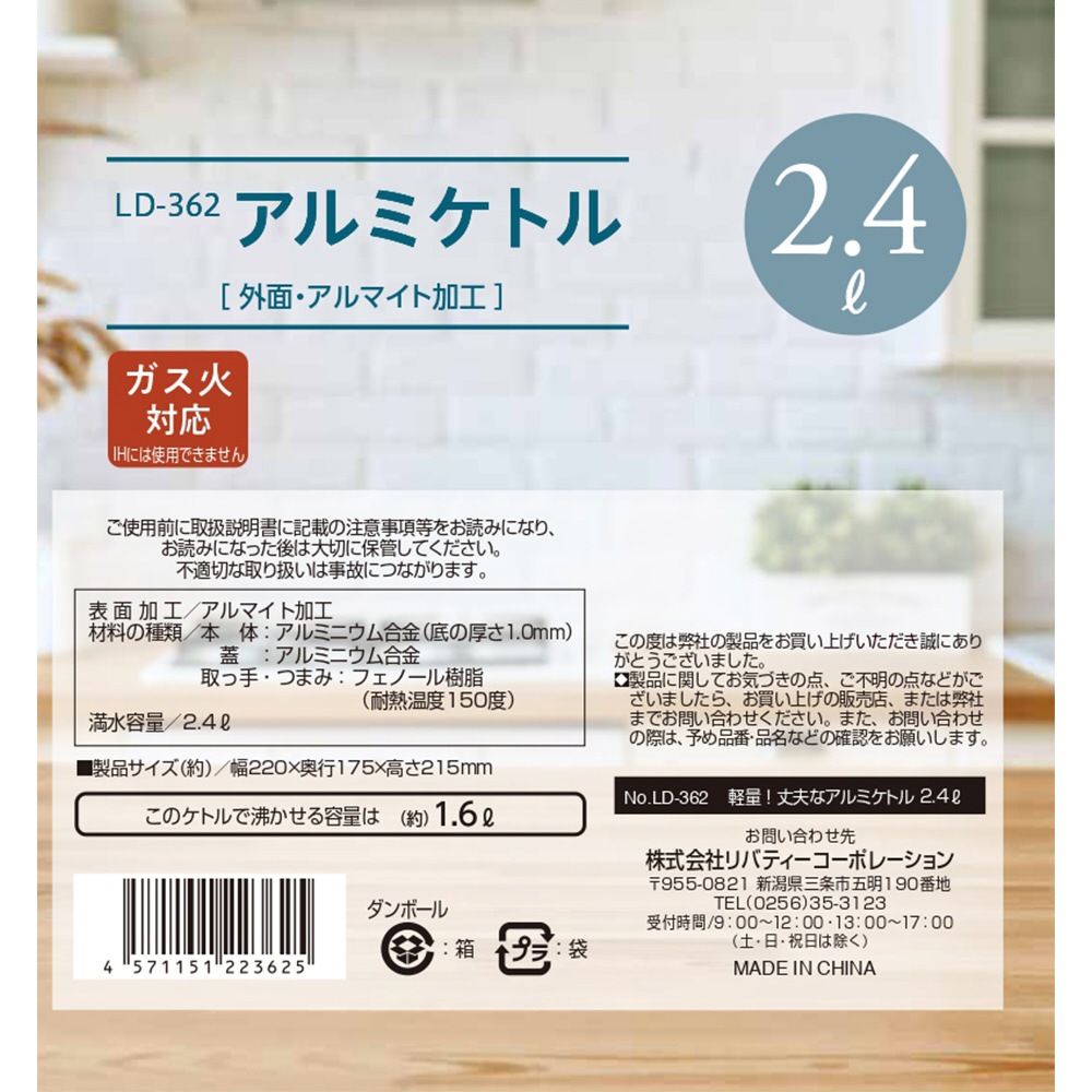 熱伝導性抜群!軽くて使いやすいアルミケトル。 アルマイト加工で耐久性も◎ガ