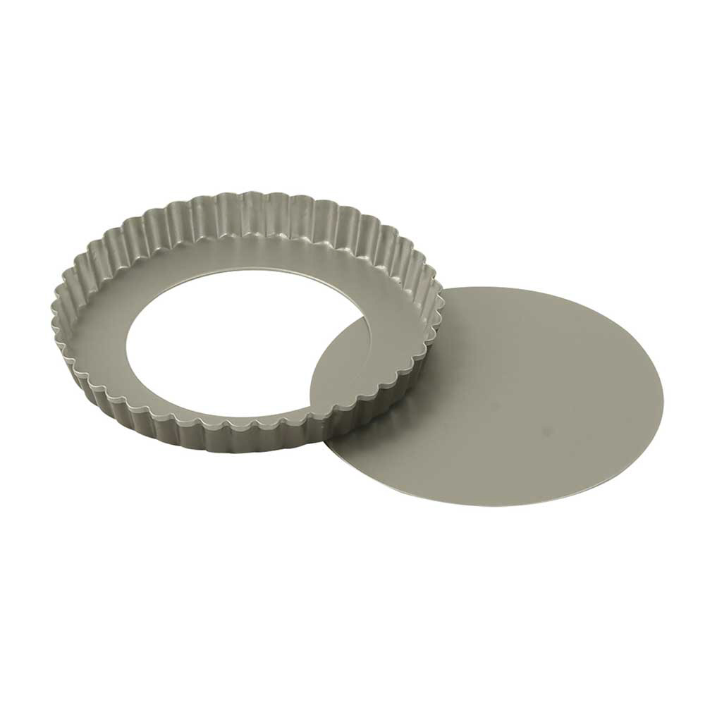 こびりつきにくく、お手入れ簡単なふっ素樹脂加工の底取れ式タルト型。