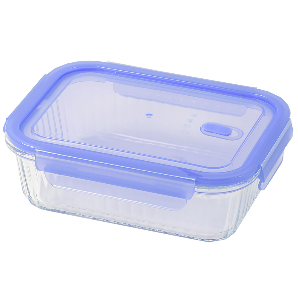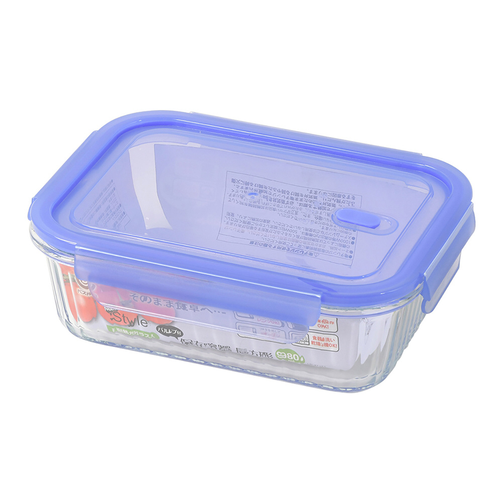 耐熱ガラス バルブ付 保存容器 長方形 980ml NewStyle クリアブルー LD-471