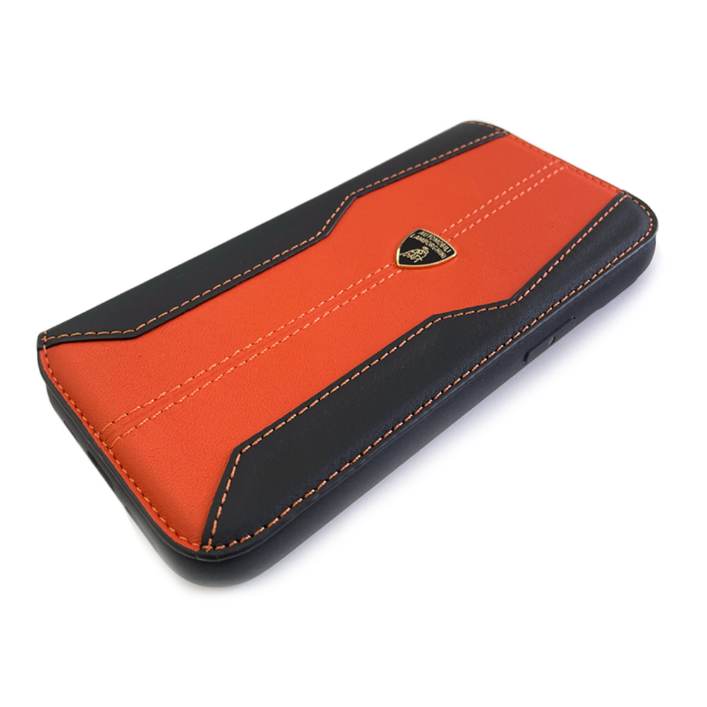 ランボルギーニ iPhone 15 Pro Max用 本革 手帳型ケース オレンジ LBTPUFCIP15PMHUD1OE