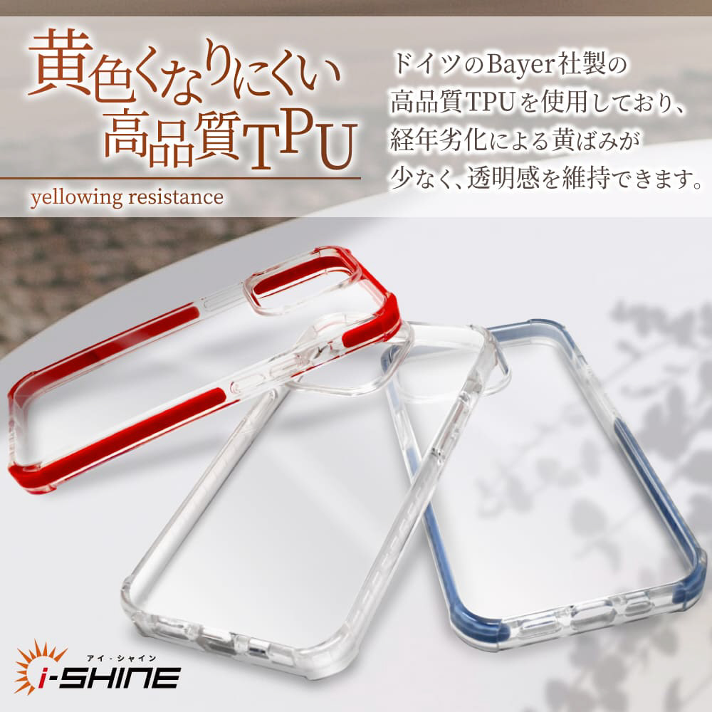 i-Shine(アイシャイン)ケースはTPU部分が黄ばみにくいBayer社製の材料を採用。