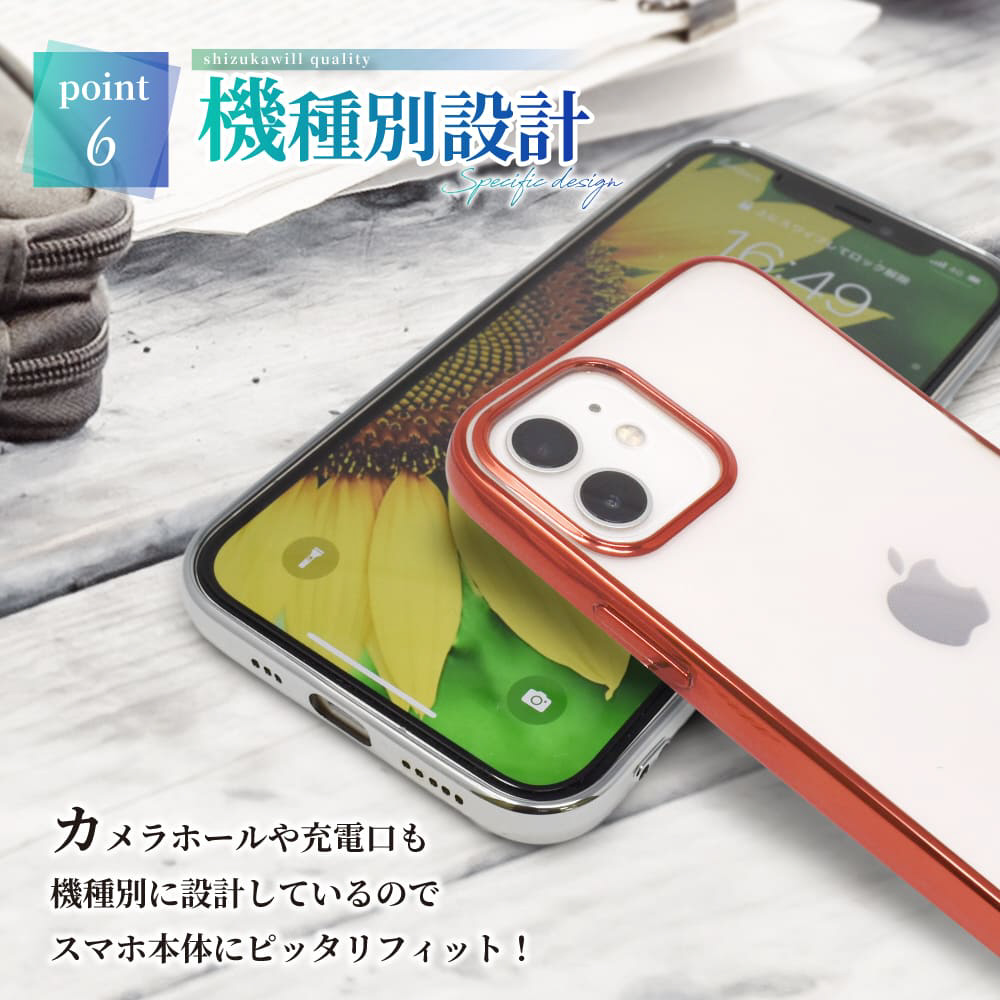 クリアケースのサイドやカメラまわりをメッキ加工でアクセント!気軽に楽しむお洒落としていかがですか?
