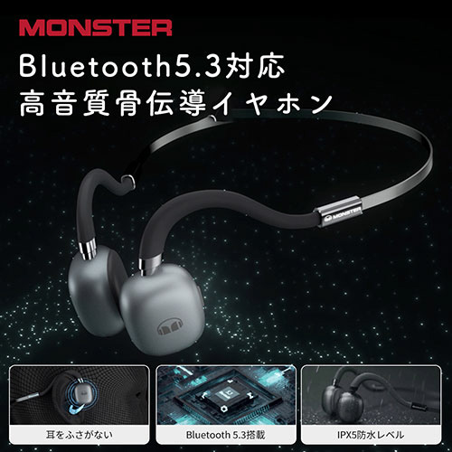 耳をふさがない新しい聴き方! Monster製高品質骨伝導イヤホン