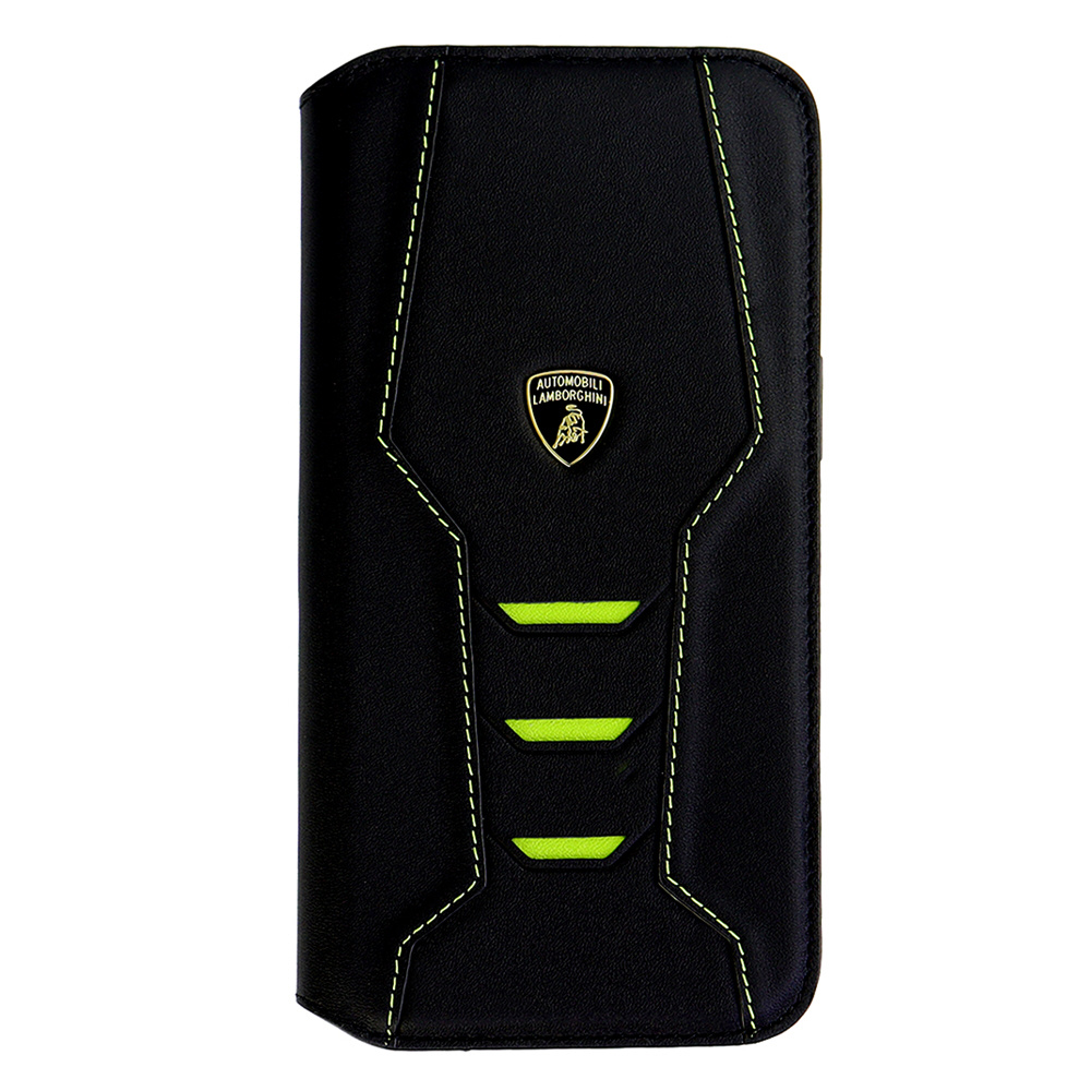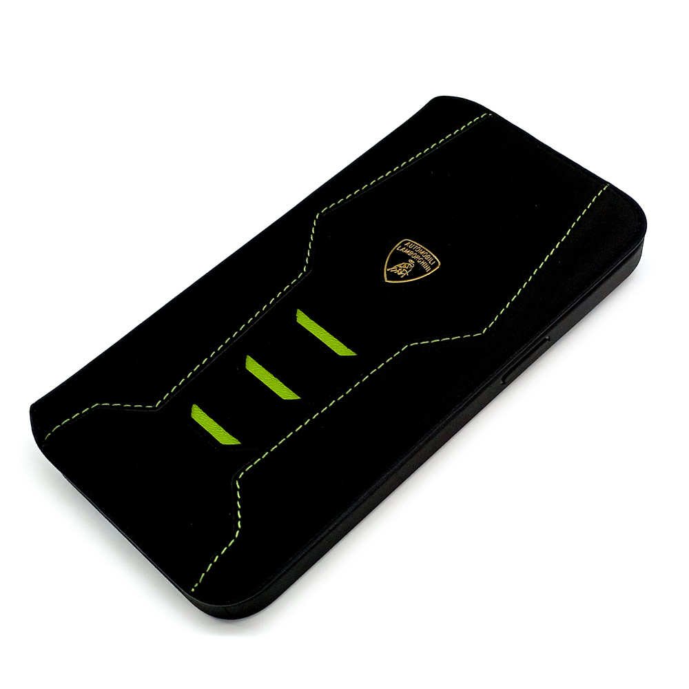 ランボルギーニ iPhone15 Pro Max用 本革 手帳型ケース グリーン LBTPUFCIP15PMHUD16GN