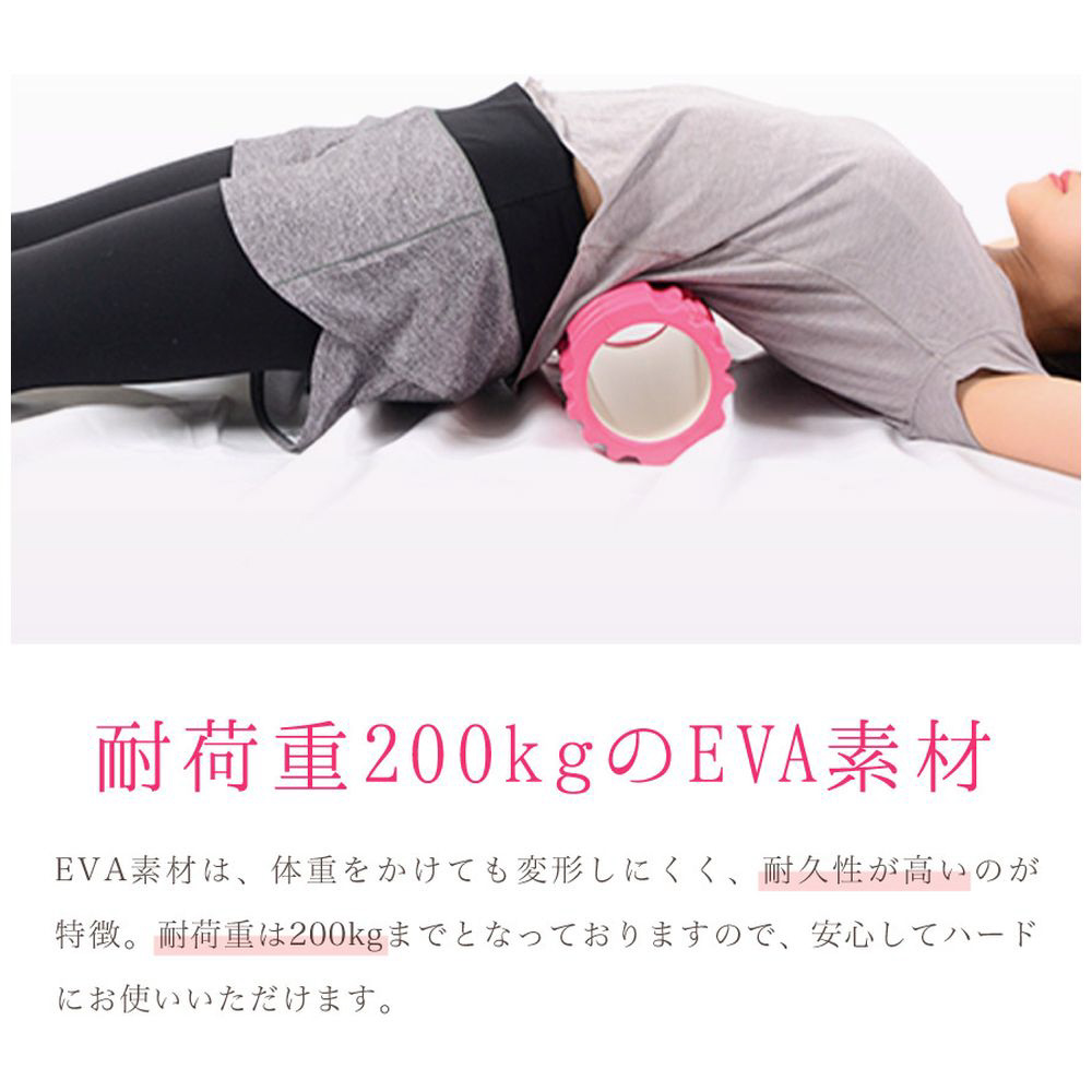 表面に2種類の異なる凹凸を配置。それぞれを使い分けることによって、刺激を与えたいポイントを狙ってもみほぐします。耐荷重は200kgまでとなっておりますので、安心してハードにお使いいただけるフォームローラーです。