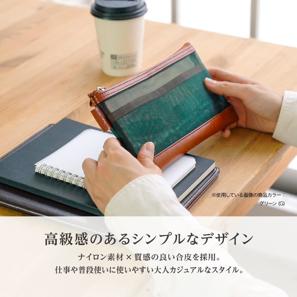 質感が良く、軽くて使いやすい。大人カジュアルなメッシュペンケース。