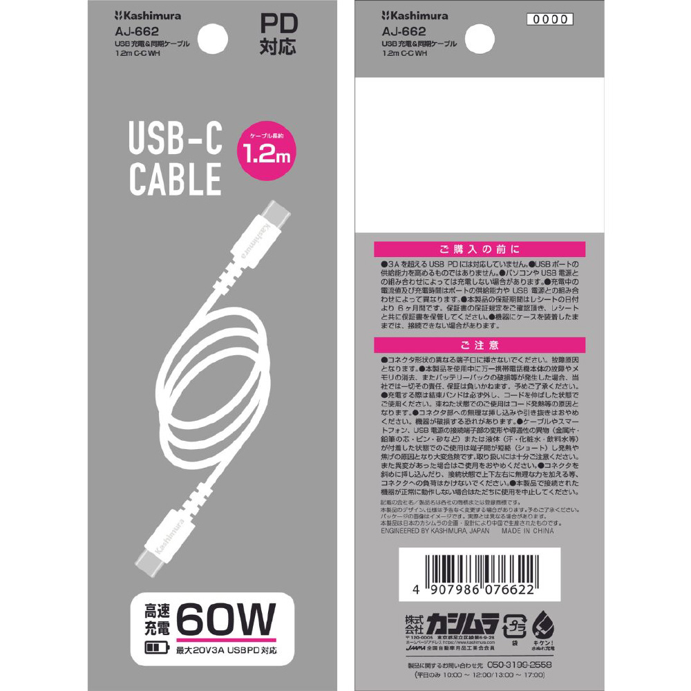 USB充電&同期ケーブル 1.2m Type-C-C ホワイト AJ-662 [USB-C ⇔ USB-C]
