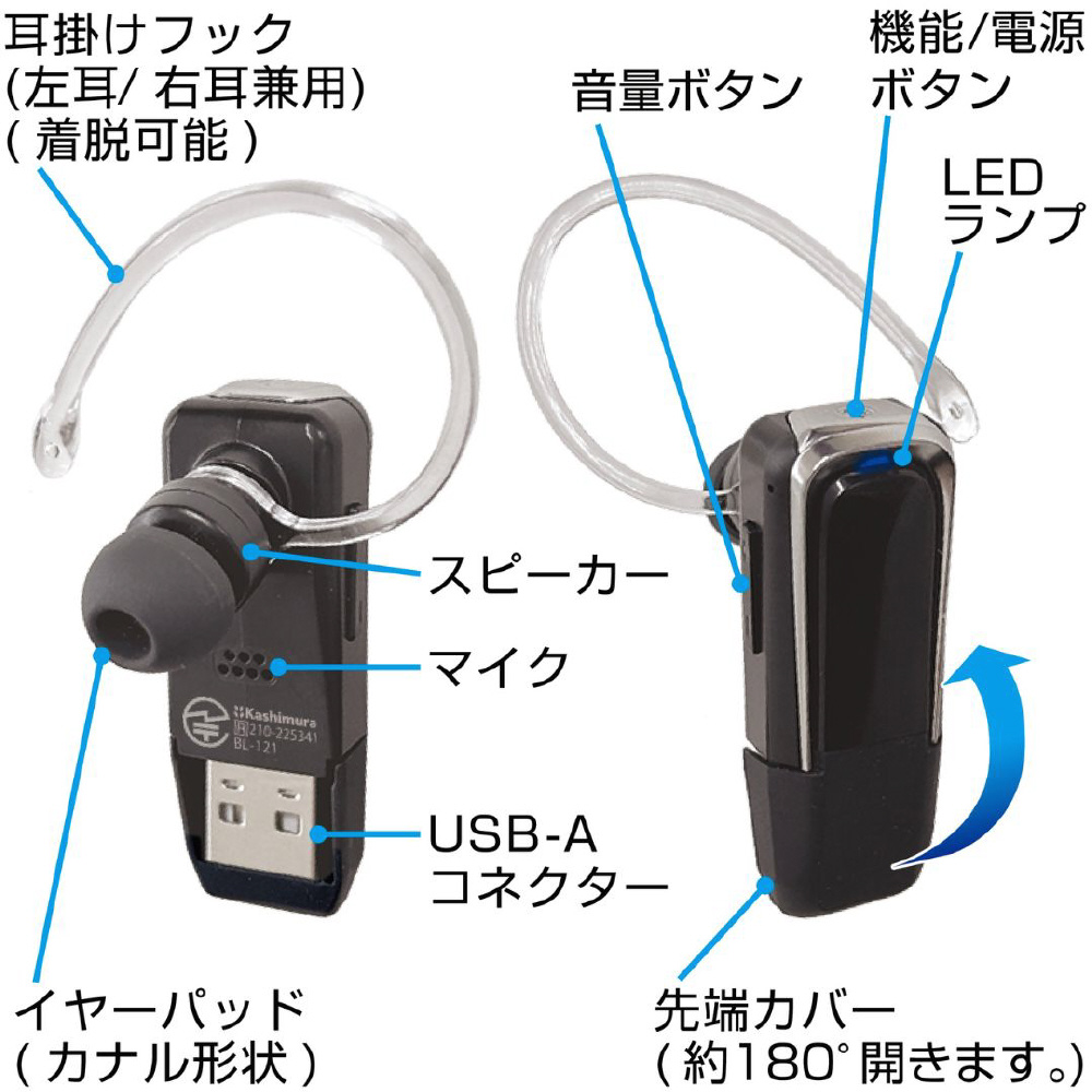 ヘッドセット ブラック BL-121 [ワイヤレス(Bluetooth) /片耳 /イヤフックタイプ]