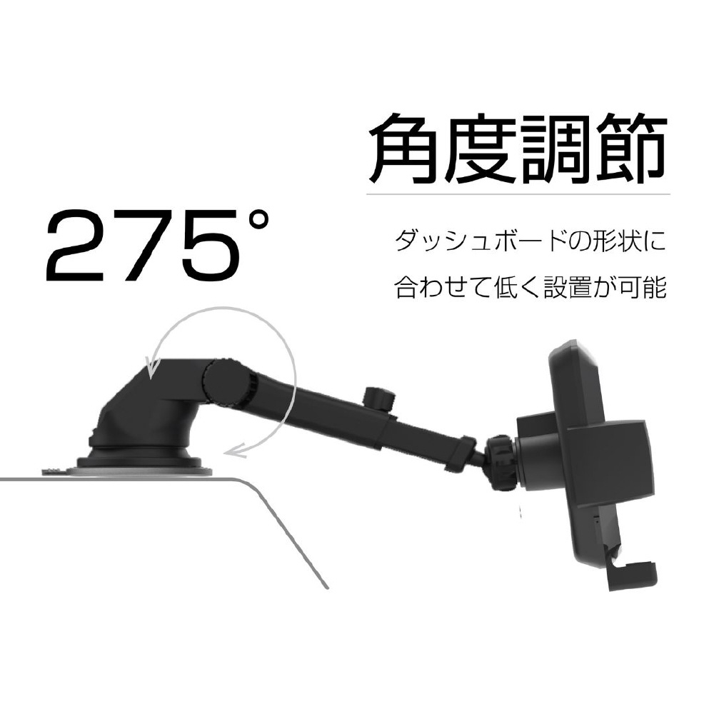 自動開閉式 ワイヤレス充電ホルダー FMトランスミッター付 吸盤取付 ブラック KW-48