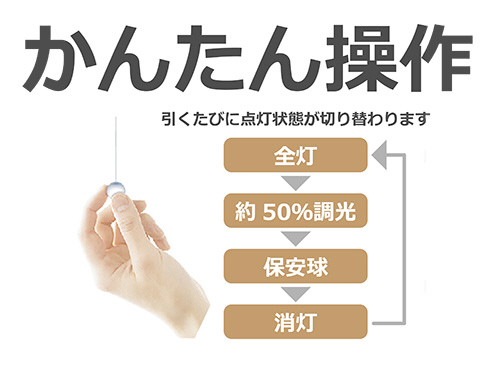 ●プルスイッチ付(全灯→約50%調光→常夜灯→消灯)