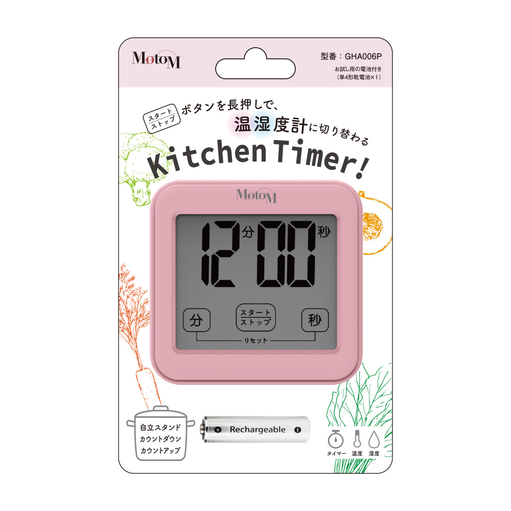 温湿度計付きキッチンタイマー MotoM ピンク GHA006P