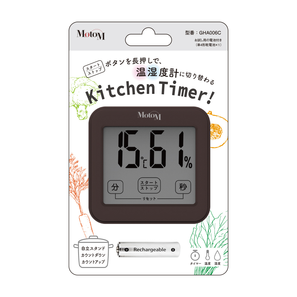 温湿度計付きキッチンタイマー MotoM ダークブラウン GHA006C