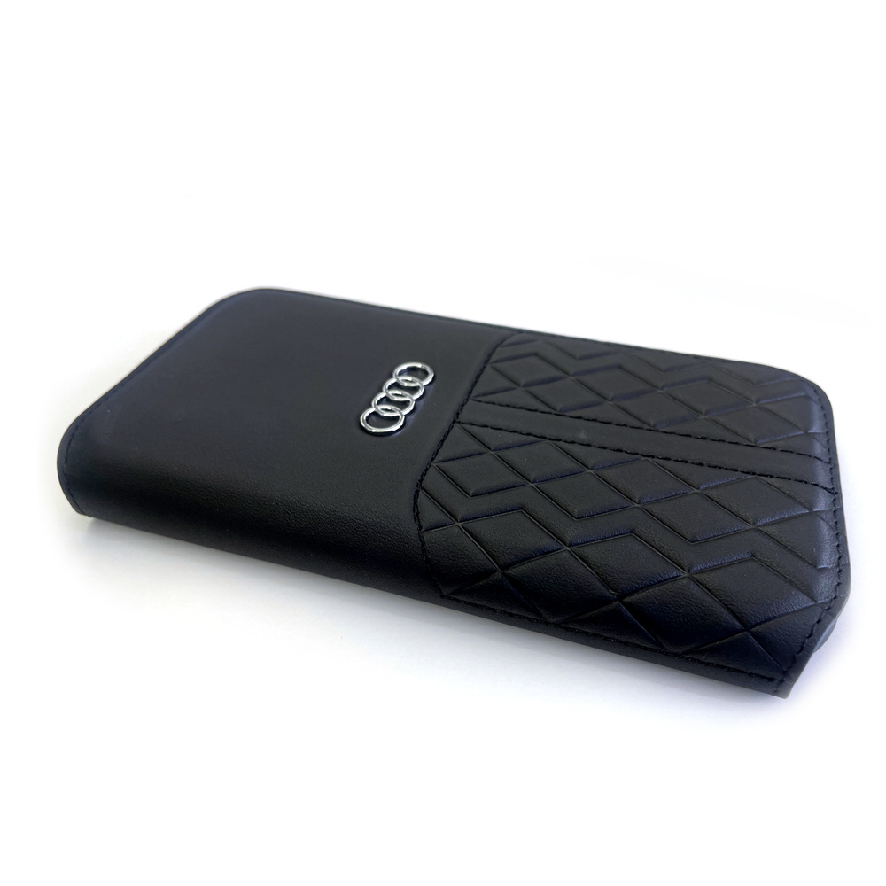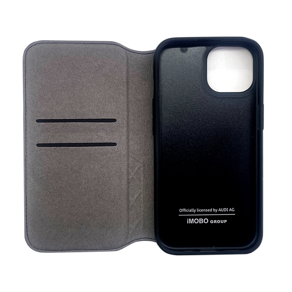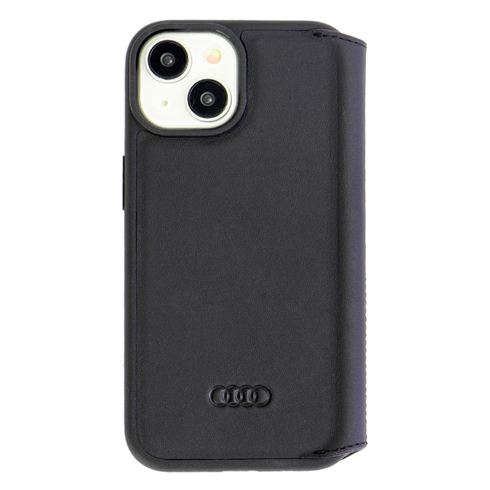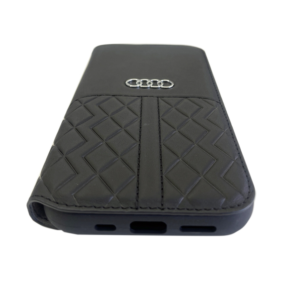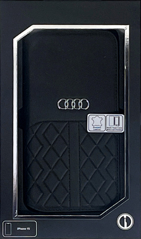 アウディ iPhone15用 本革 手帳型ケース ブラック AUTPUFCIP15A3D1BK