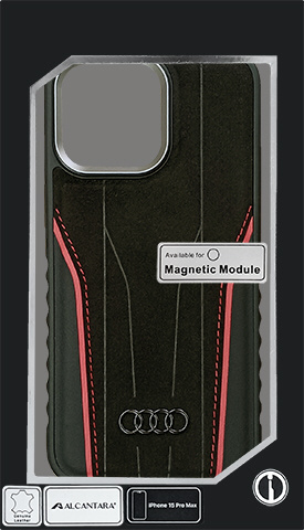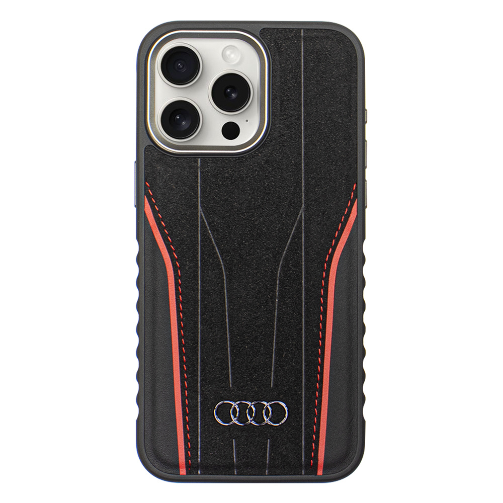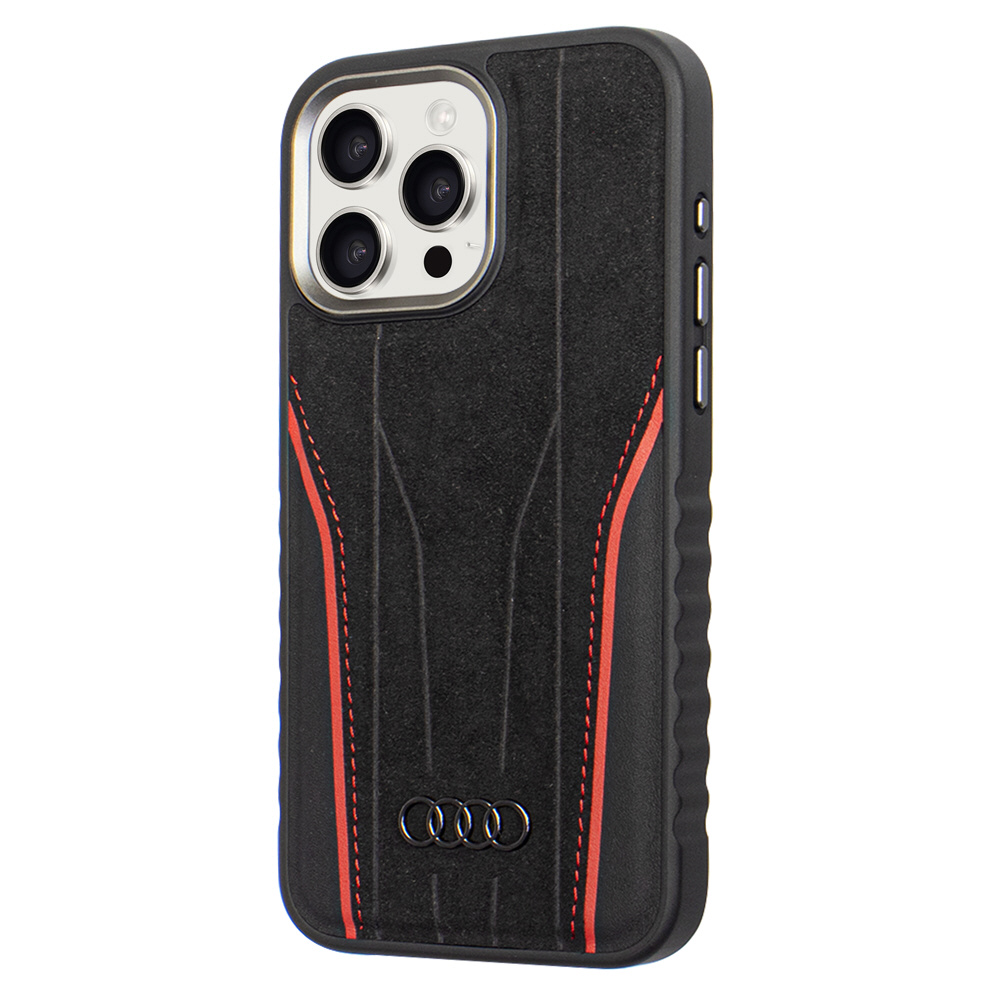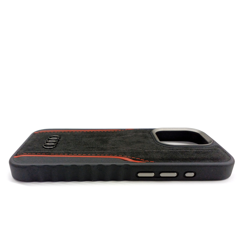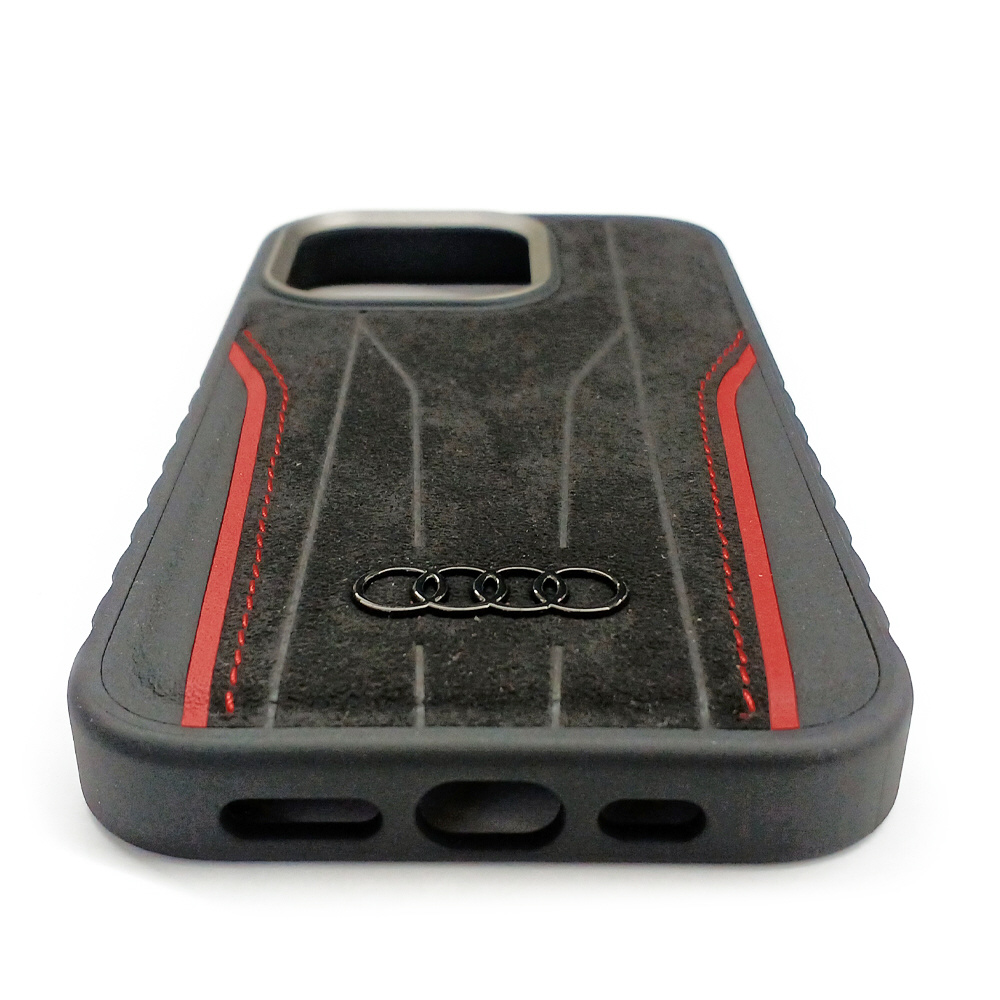 アウディ iPhone15 Pro Max用 アルカンターラ&本革 背面ケース レッド AUTPUPCMIP15PMR8D3RD