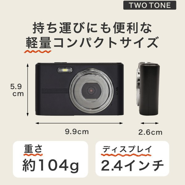 ツートンカラーを基調とした、コンパクトデジタルカメラです。軽量コンパクトモデルなので、小さいお子様からデジタルカメラ初心者の方まで、お気軽にお使いいただくことができます。