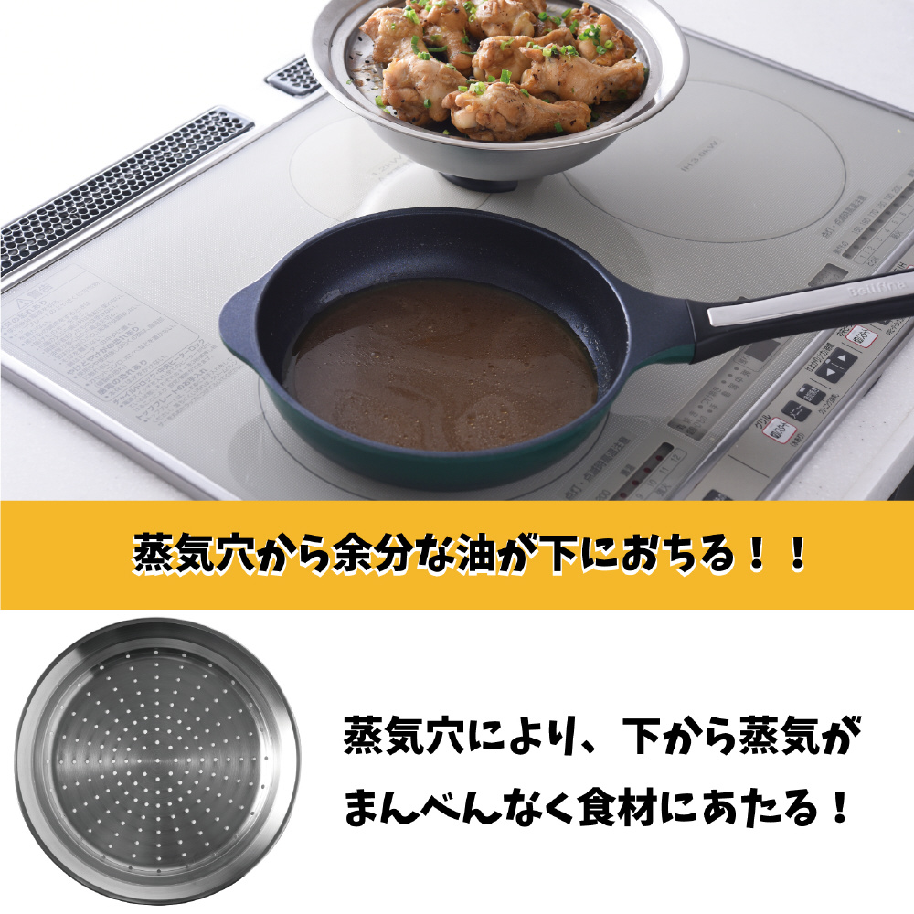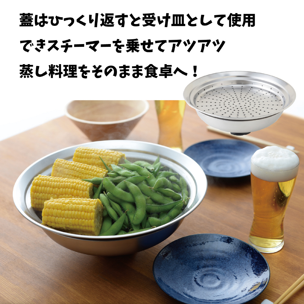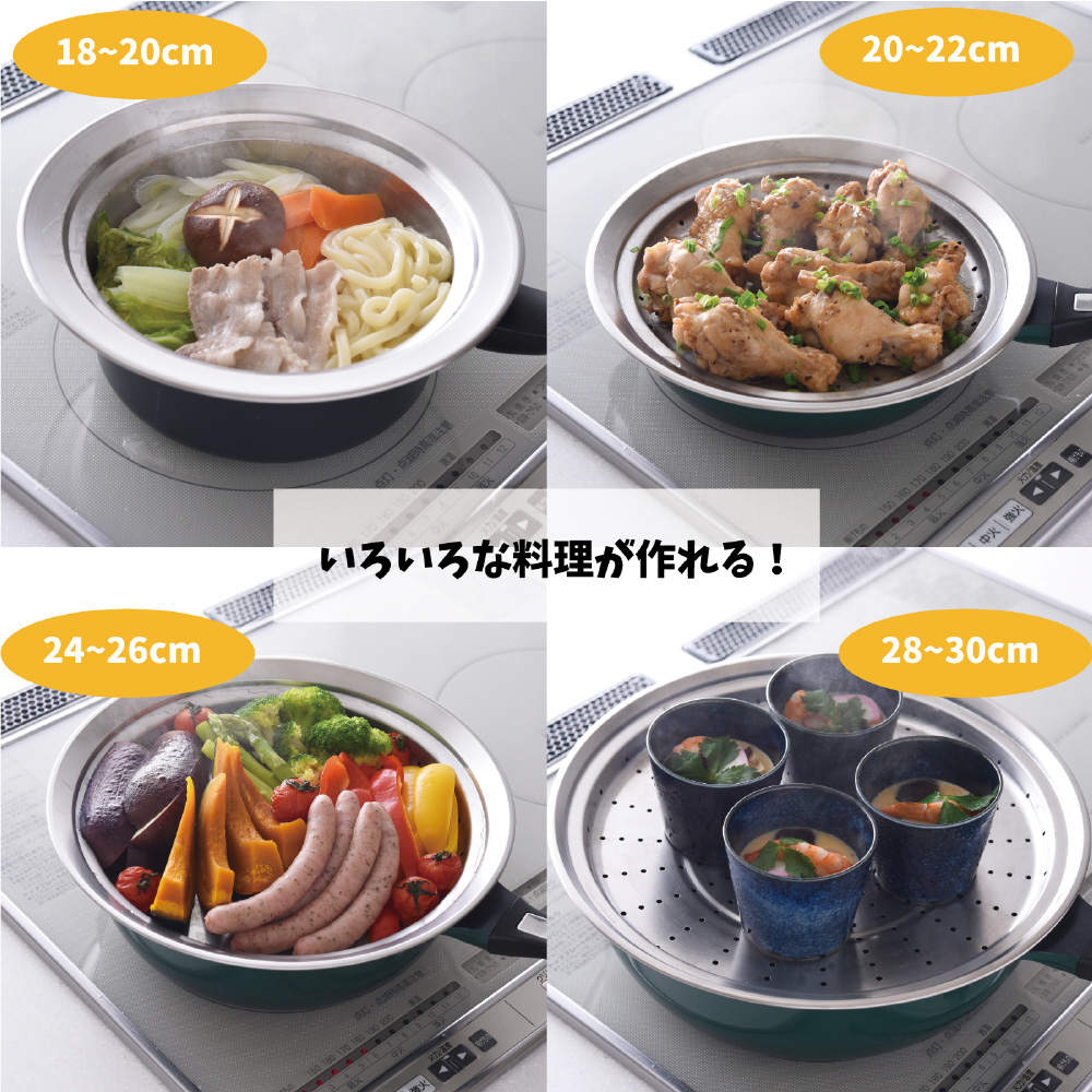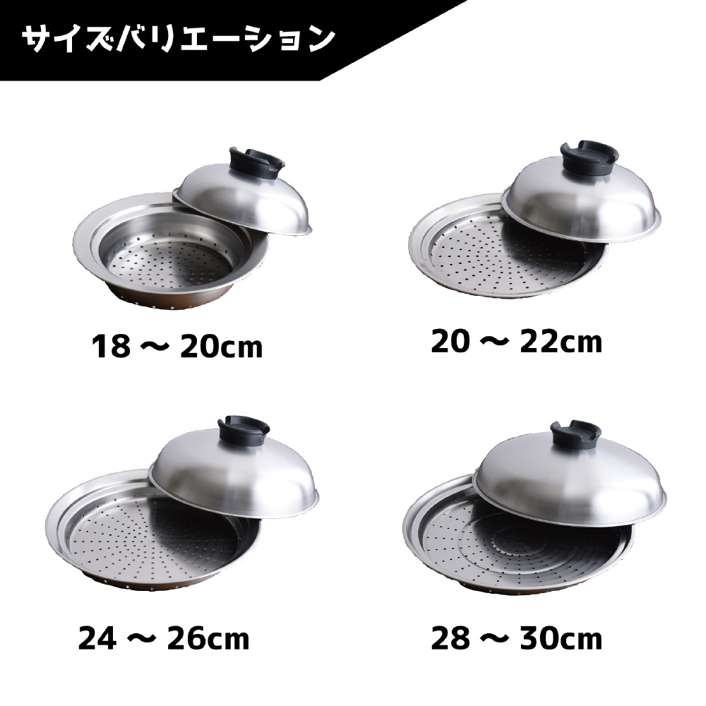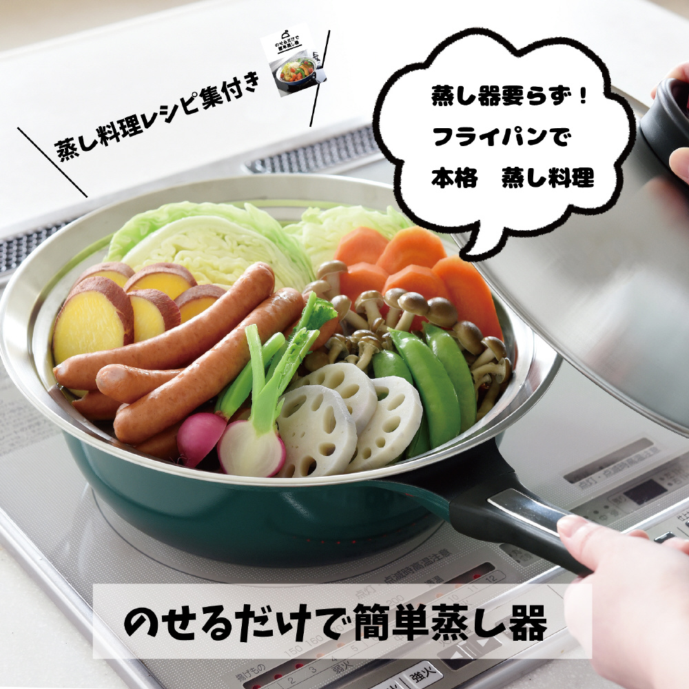 収納で嵩張ることから敬遠されがちな蒸し器を使わず、お手持ちのフライパンや鍋にのせるだけで、本格的な蒸し料理ができるステンレス製のスチーマー。