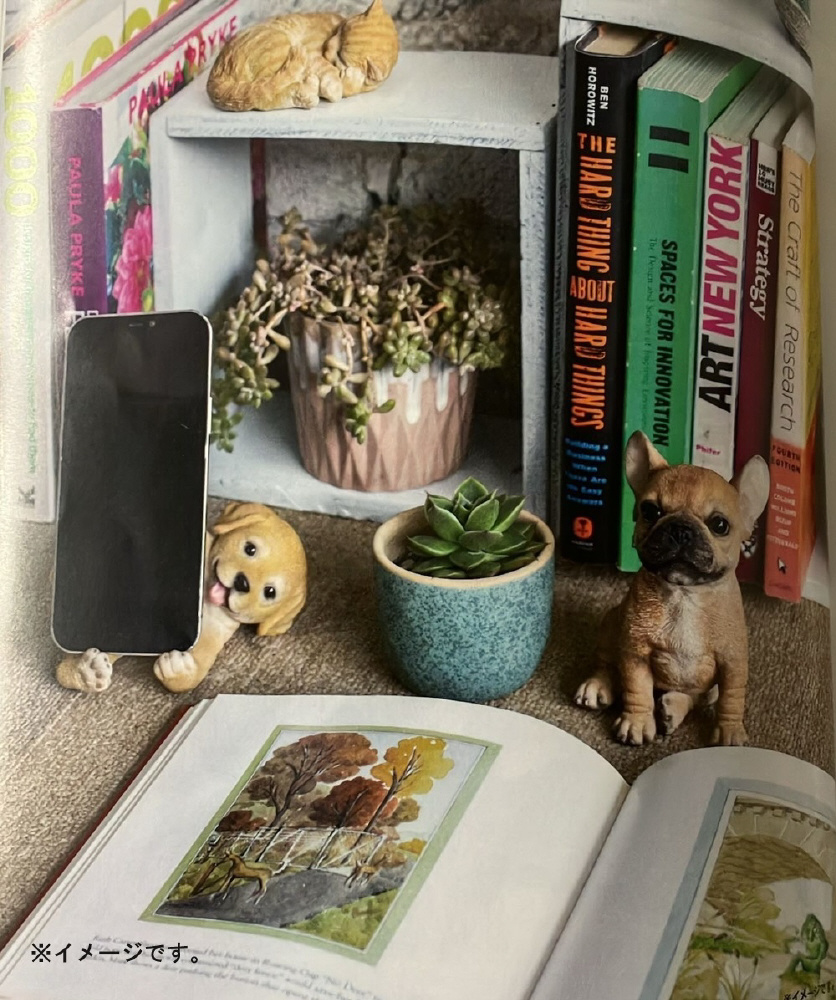 様々な姿勢や表情で描かれた無邪気で好奇心旺盛な動物が、遊んでいるような様子や静かにくつろぐ姿がかわいいスマホスタンド。