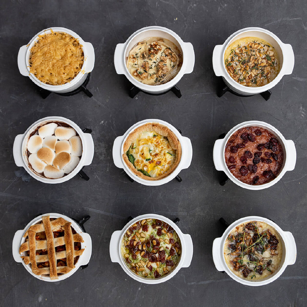 蓋付きのコンパクトで多機能なオーブンディッシュは、前菜、主菜、デザート、または飲み物のための美味しい料理を作るために使用できます。チーズフォンデュを作ったり、肉や魚を煮たりするのにも適しています。