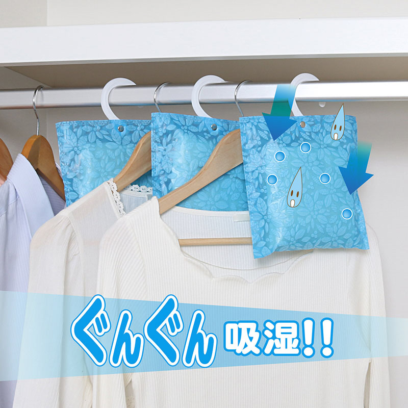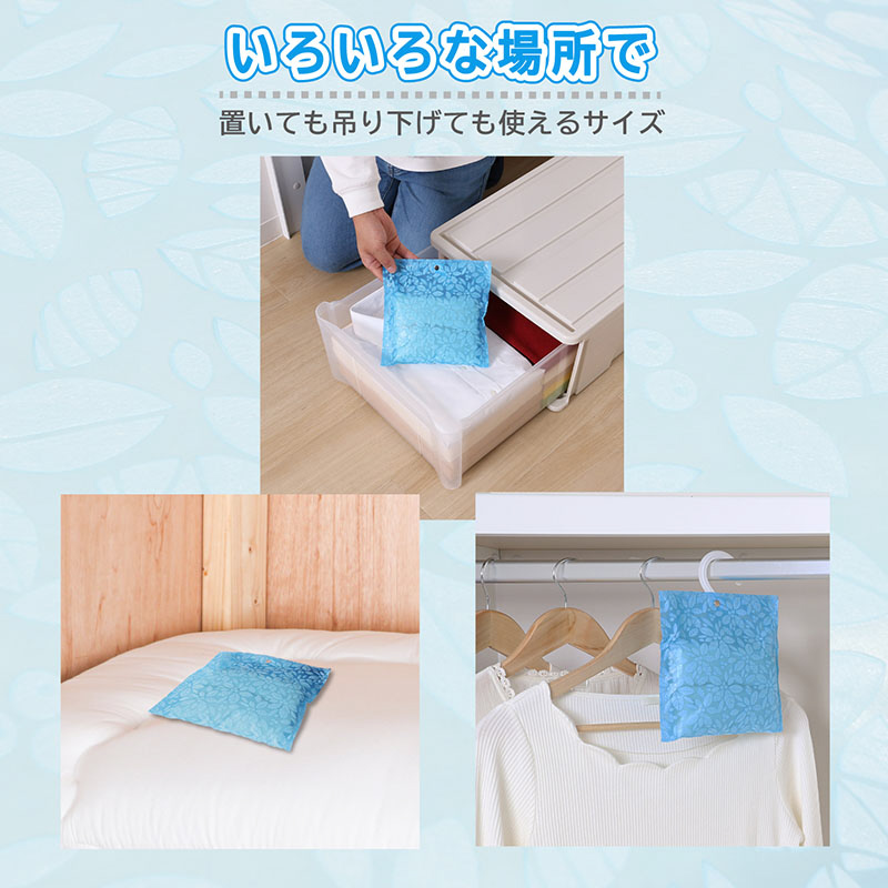 湿気が気になるところに吊り下げたり、置いておくだけでしっかり除湿。