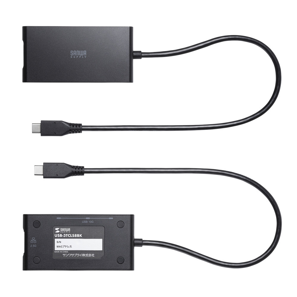 LAN変換アダプタ AC電源 [USB-C オス→メス LAN /USB-C+USB-Ax2] 2.5Gbps対応(Mac/Windows11対応) USB-3TCLS8BK