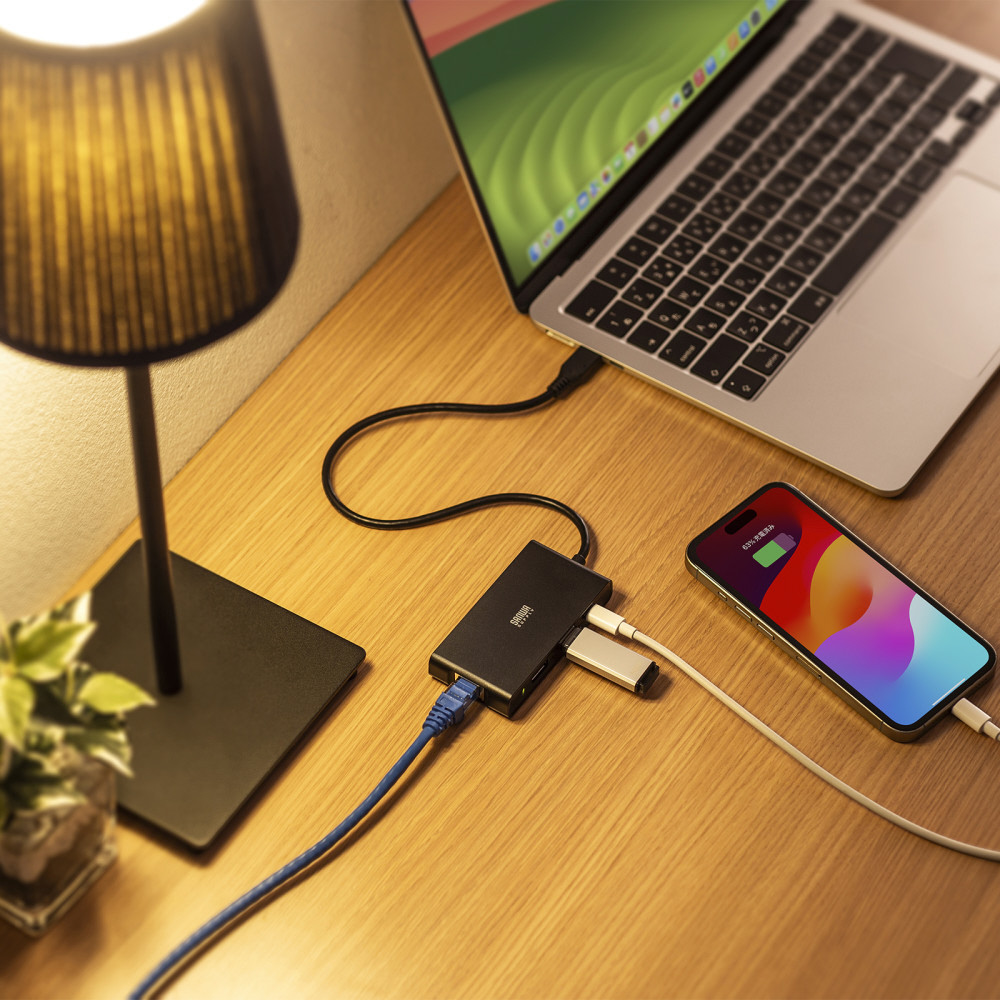 ■USB Type-CをLANポートに変換するので有線でLANを接続したいときに最適です。