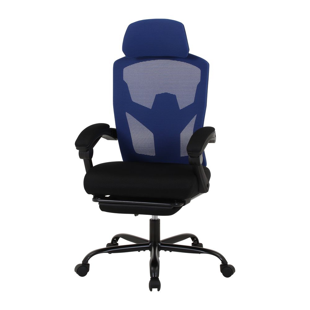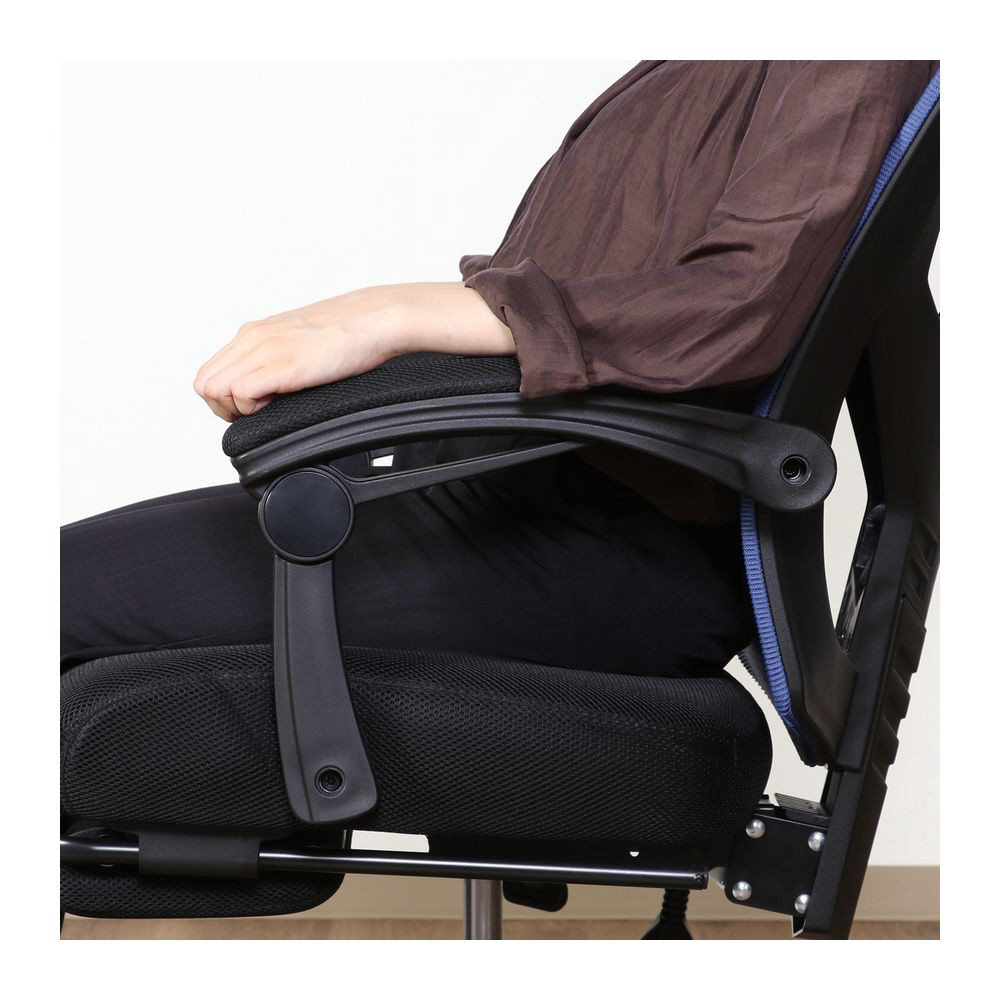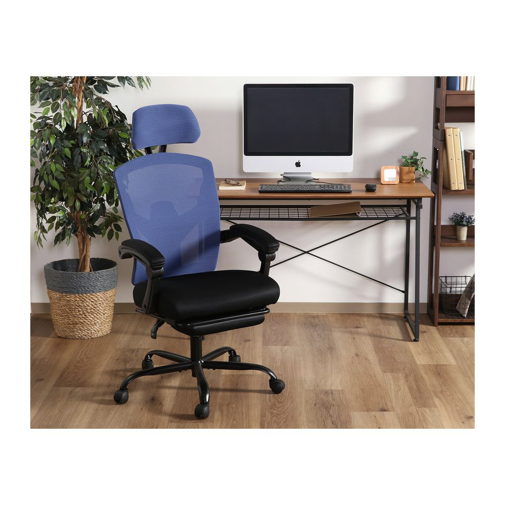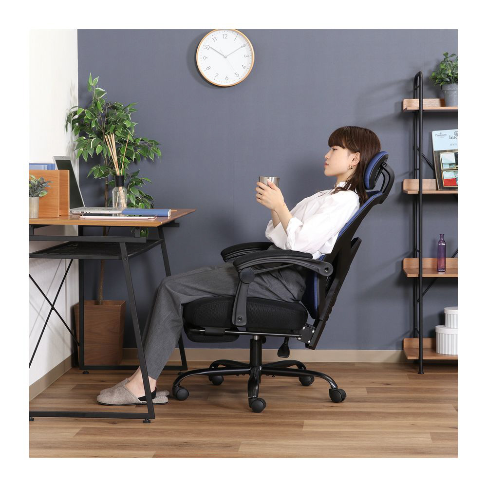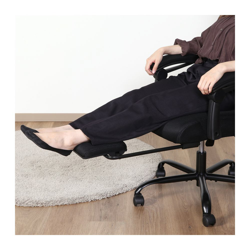 リクライニング・フットレスト付きで長時間作業も快適なメッシュオフィスチェア