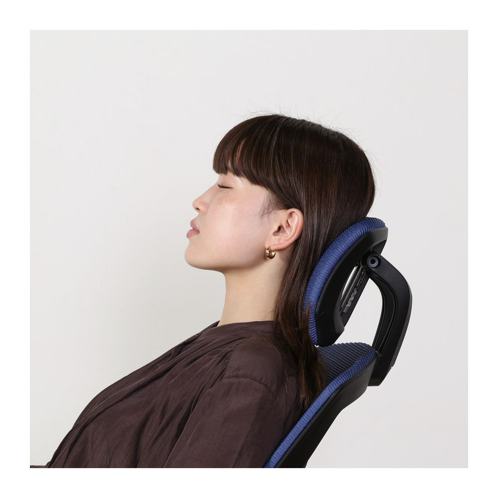 ■首や肩への負担を軽減させてくれるヘッドレスト付き。体格に合わせて角度や高さも調節可能。