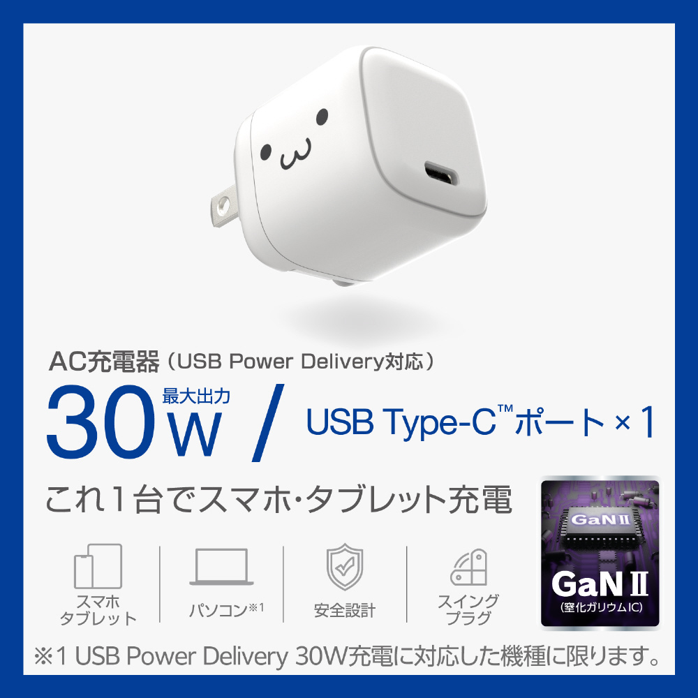 USB Type-C 充電器 PD 30W PPS Type C ×1 折りたたみプラグ 軽量 【 MacBook Air Surface GO iPhone iPad Galaxy Pixel Android スマホ タブレット PD30W充電可能機器対応 】 しろちゃん MPA-ACCP7830WF