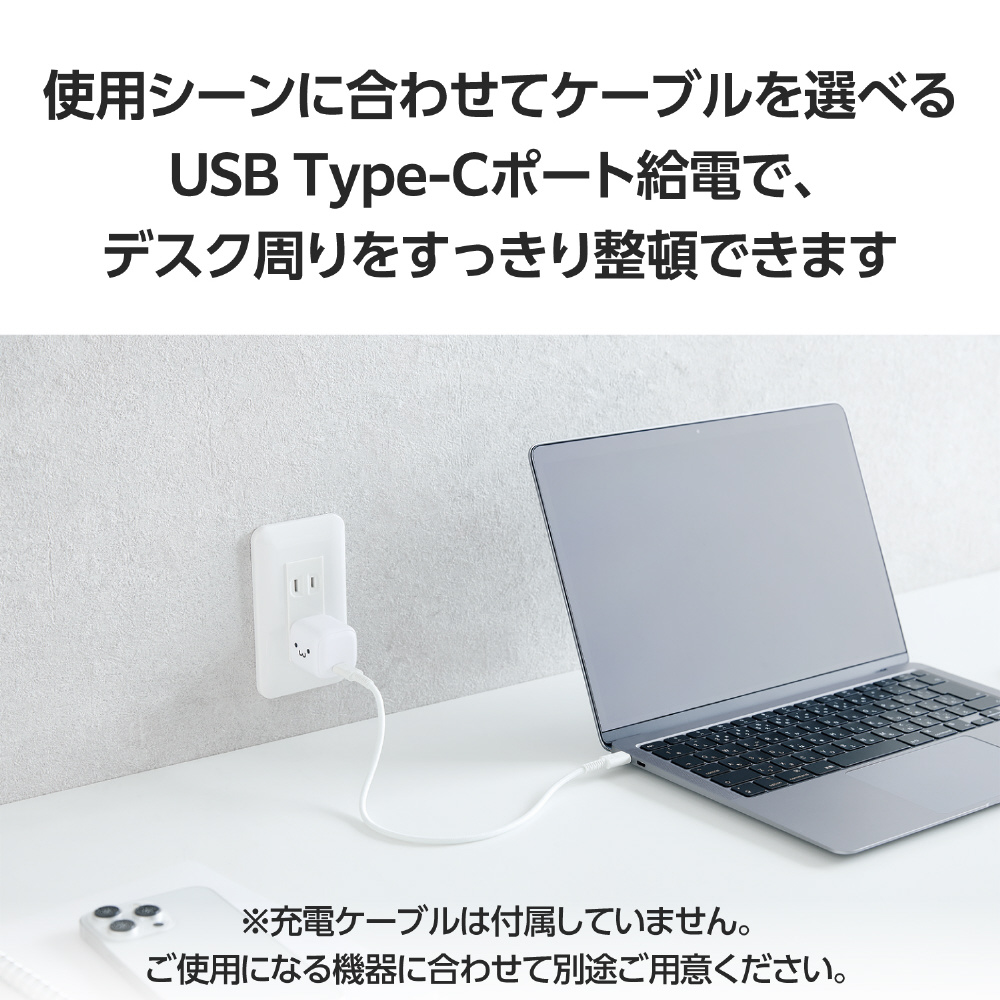 USB Power Deliveryに対応したUSB Type-C(TM)ポートを搭載し、対応するスマートフォン、タブレット、ノートパソコンなどを充電できるUSB AC充電器です。