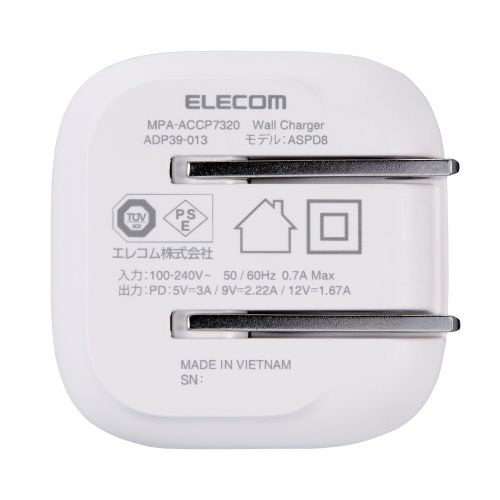 USB Type-C 充電器 PD 20W Type C ×1 折りたたみプラグ 軽量 【 iPhone iPad Galaxy Pixel Android スマホ タブレット PD20W充電可能機器対応 】 ホワイト MPA-ACCP7320WH