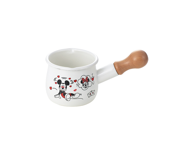 ころんと丸いフォルムの本体は両側注ぎ口付で温めたミルクをコップに注ぐのに適します。ガス火専用。