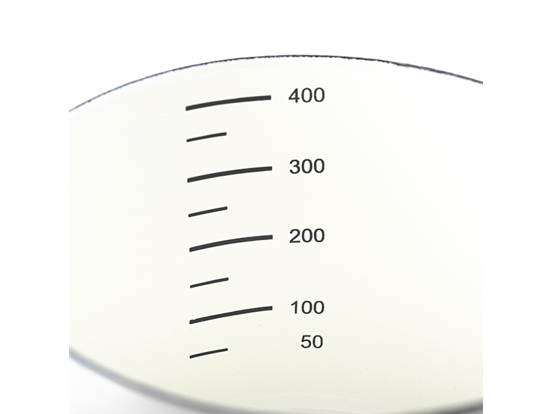 内側に容量メモリ(50ml〜400ml)が入ったメジャーカップ。ホーローは酸やアルカリに強く、においうつりがないため快適に使用できます。