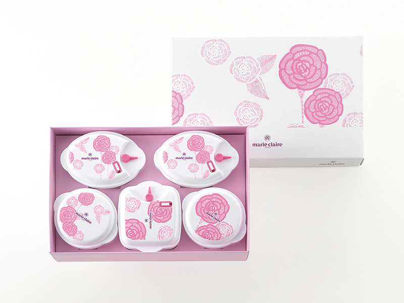 「マリ・クレール」”ローズブルーミング” 電子レンジ容器5pcセット
